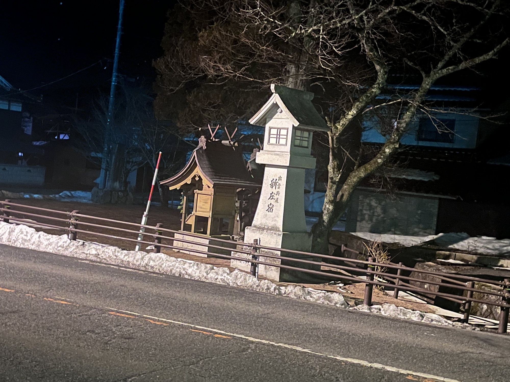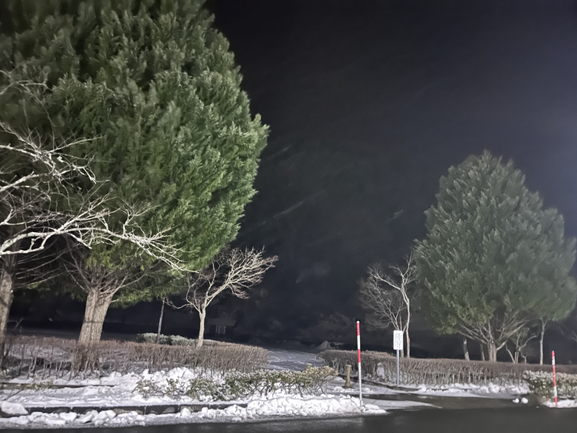 灯りに照らされるとよく降っている様に見えます.