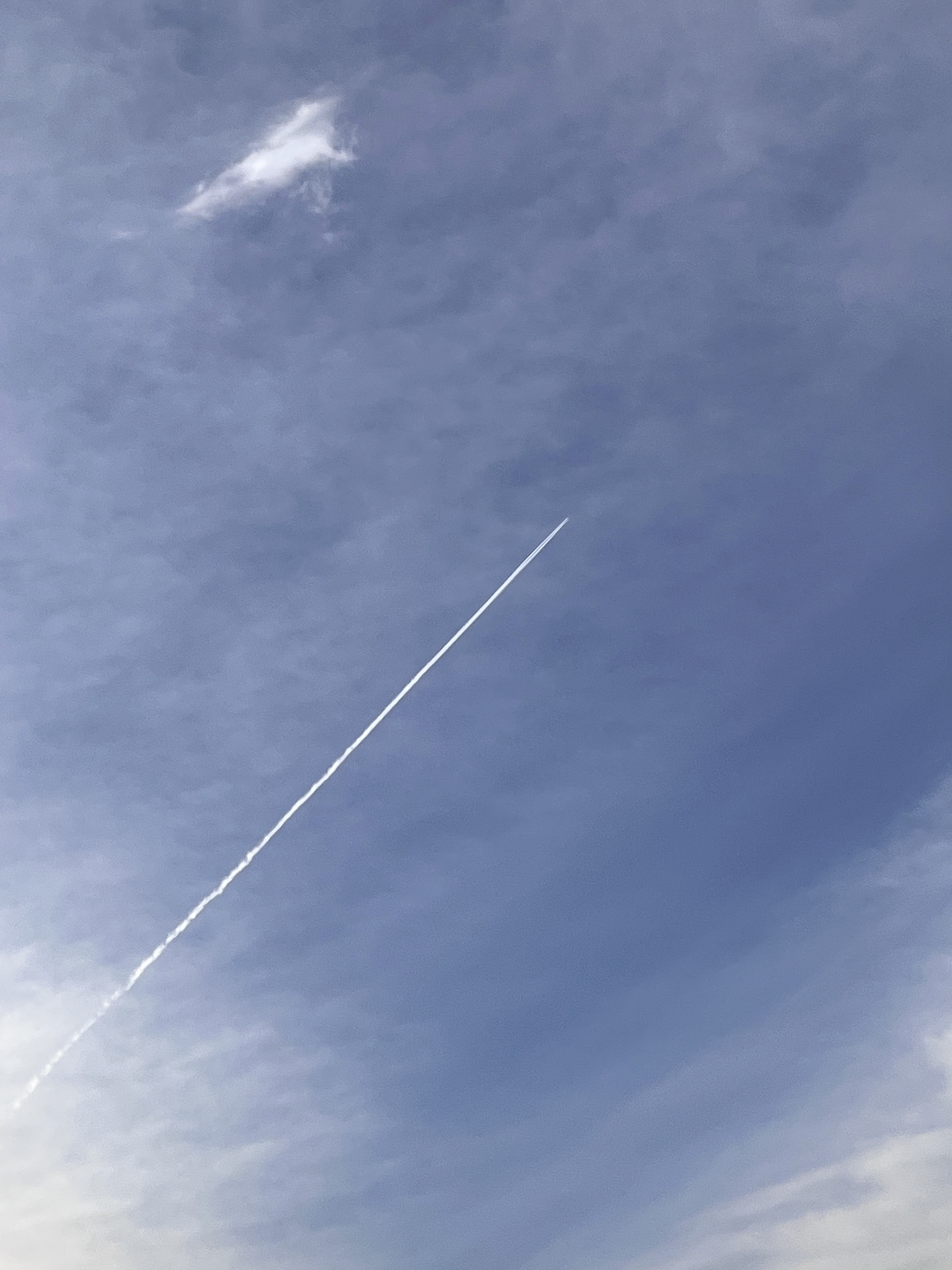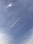 あれ、飛行機雲……朝の通勤時に見ることはないのになぁ.定期便ではない???