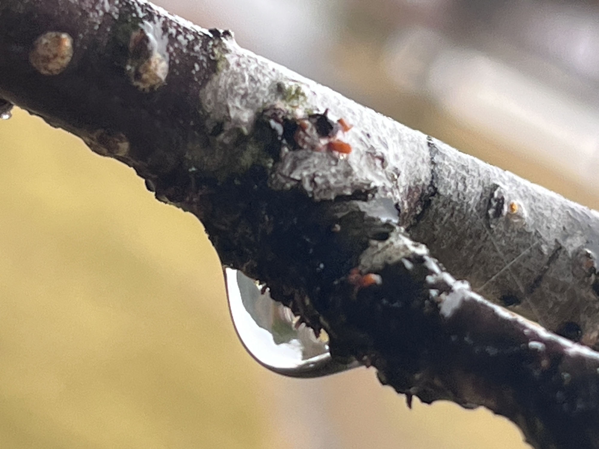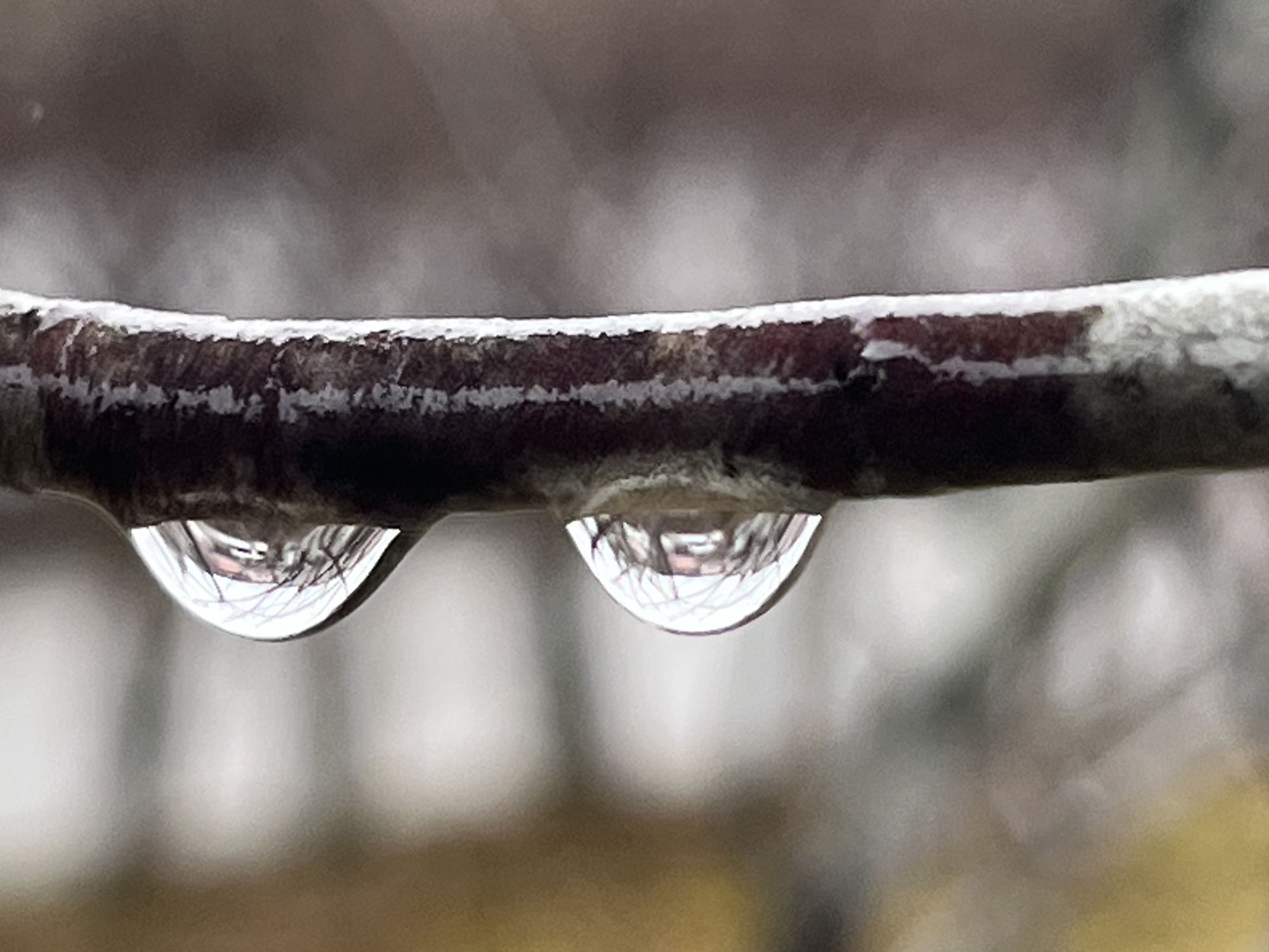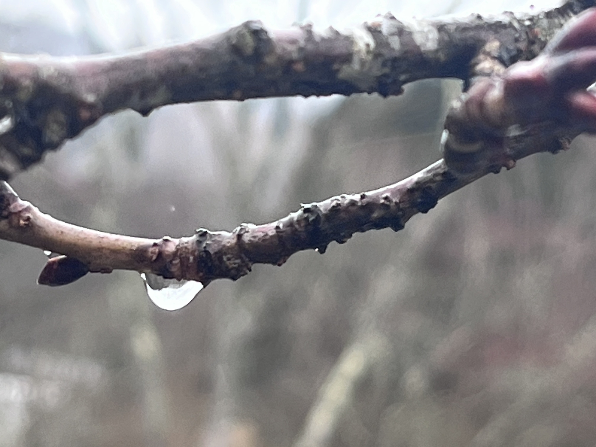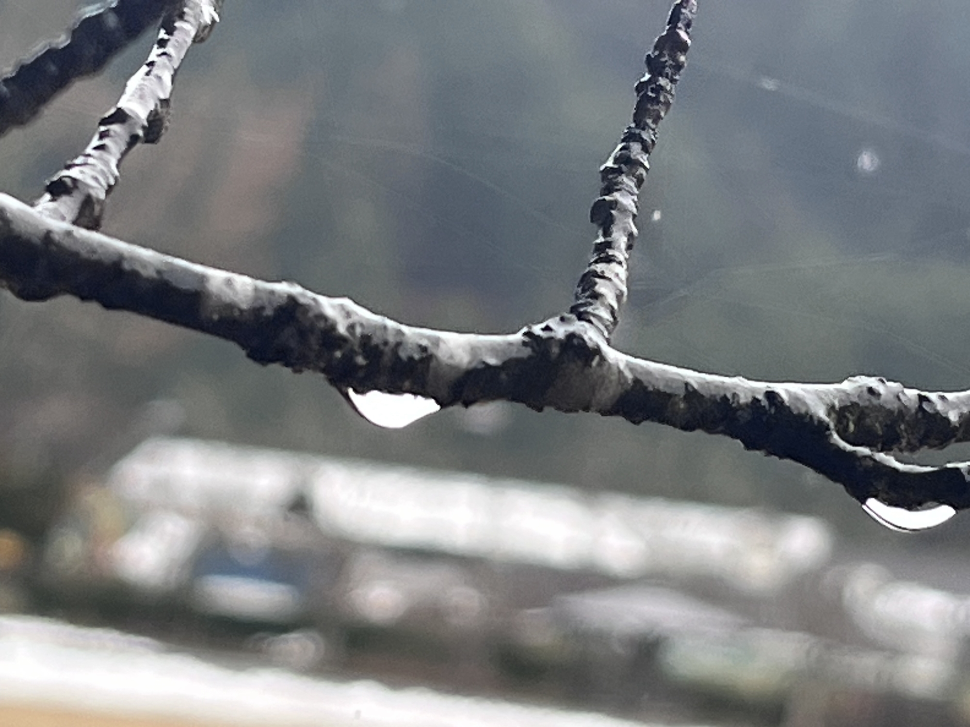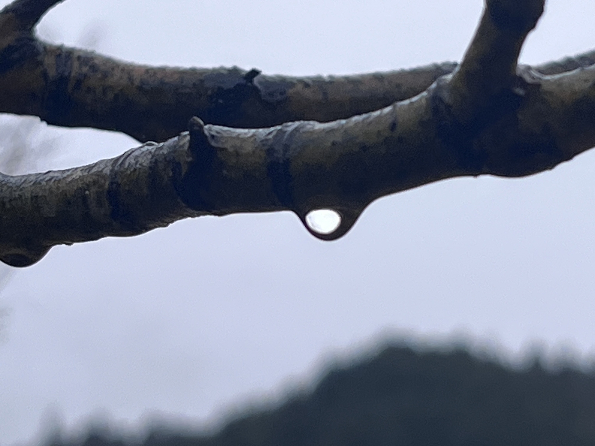 枝々が雨粒を持っています.