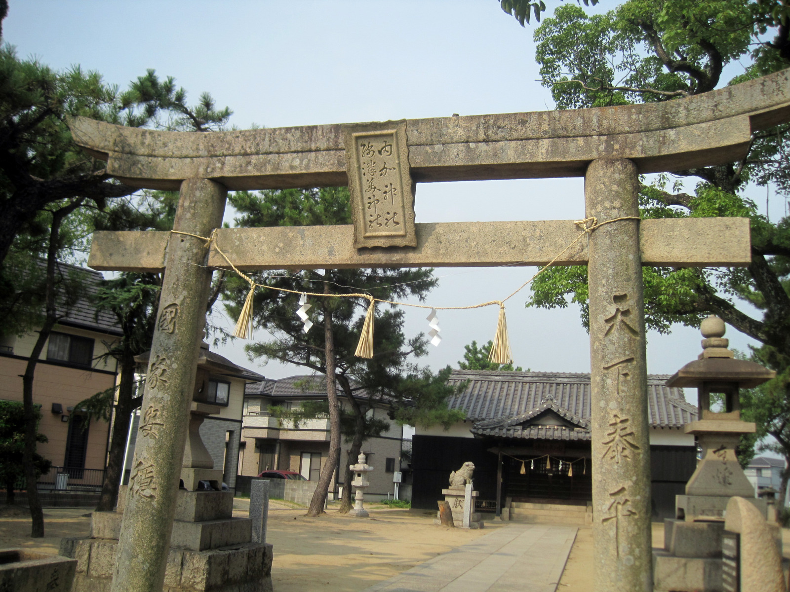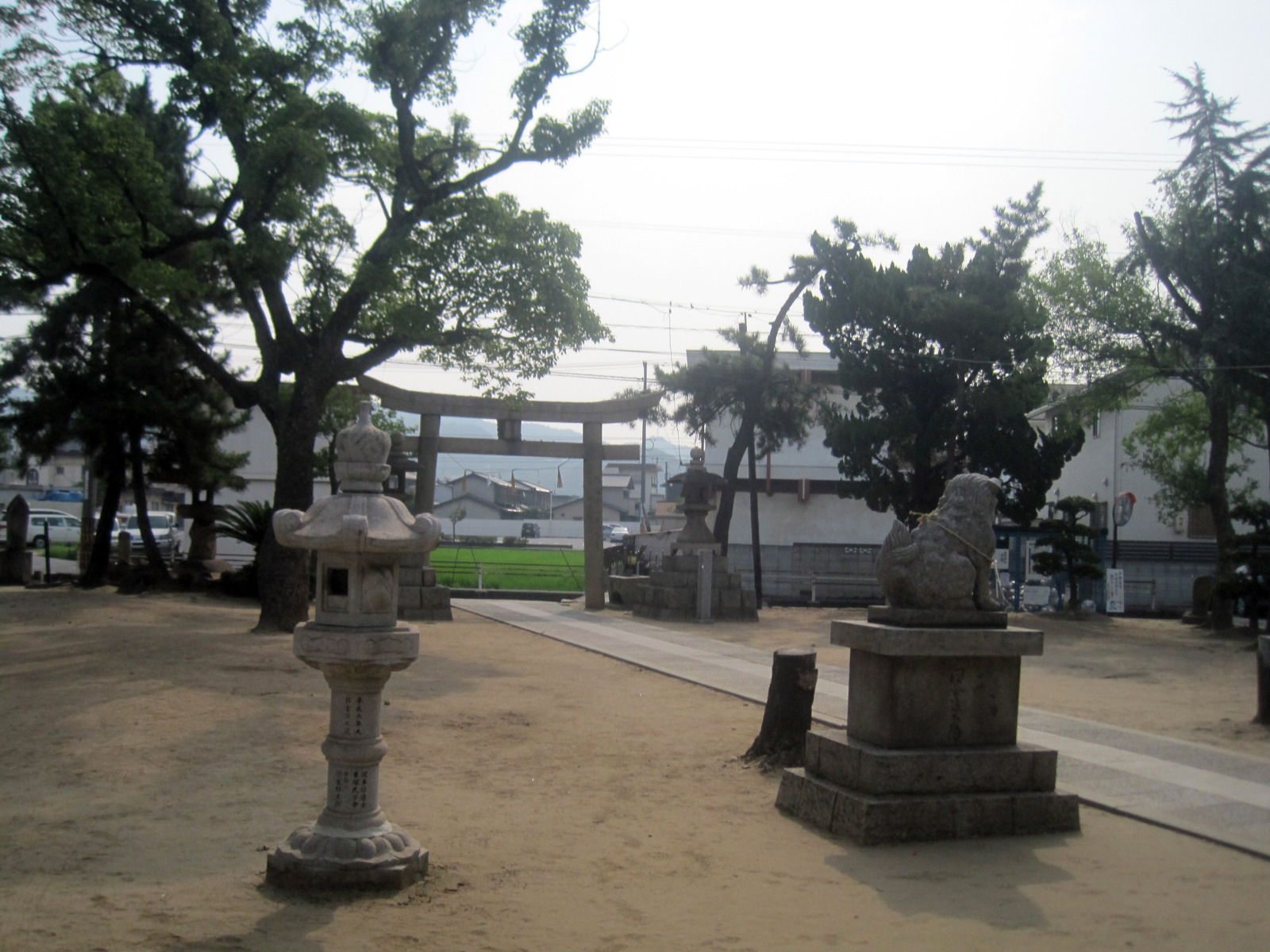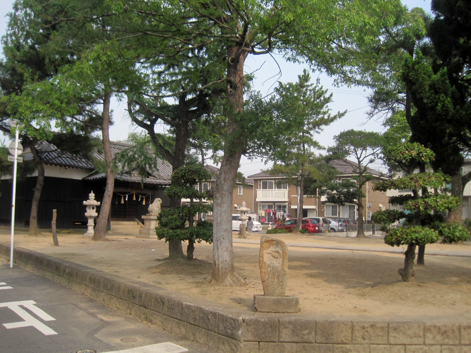 なんとなく,干拓地なのかどうか,水島地区の神社の境内は,元々の杜がなかったからなのか,土で広くなっているところが多いようです。