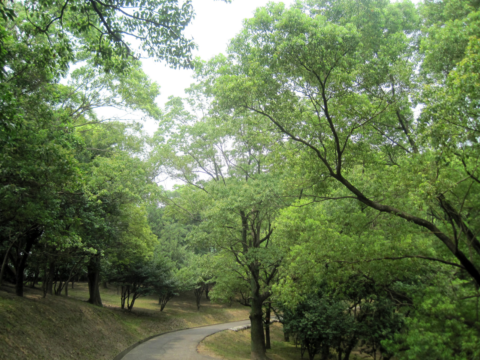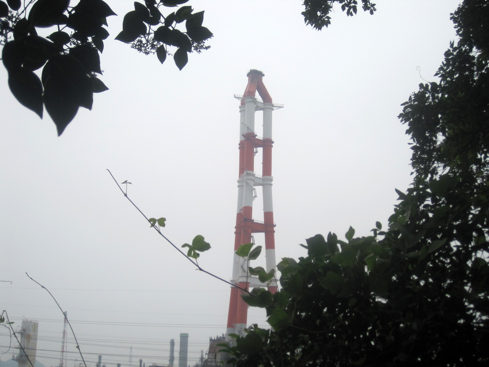 そこから緑地公園を登ってみました・・木の間から眺めるところには,どこも工場が見えます。