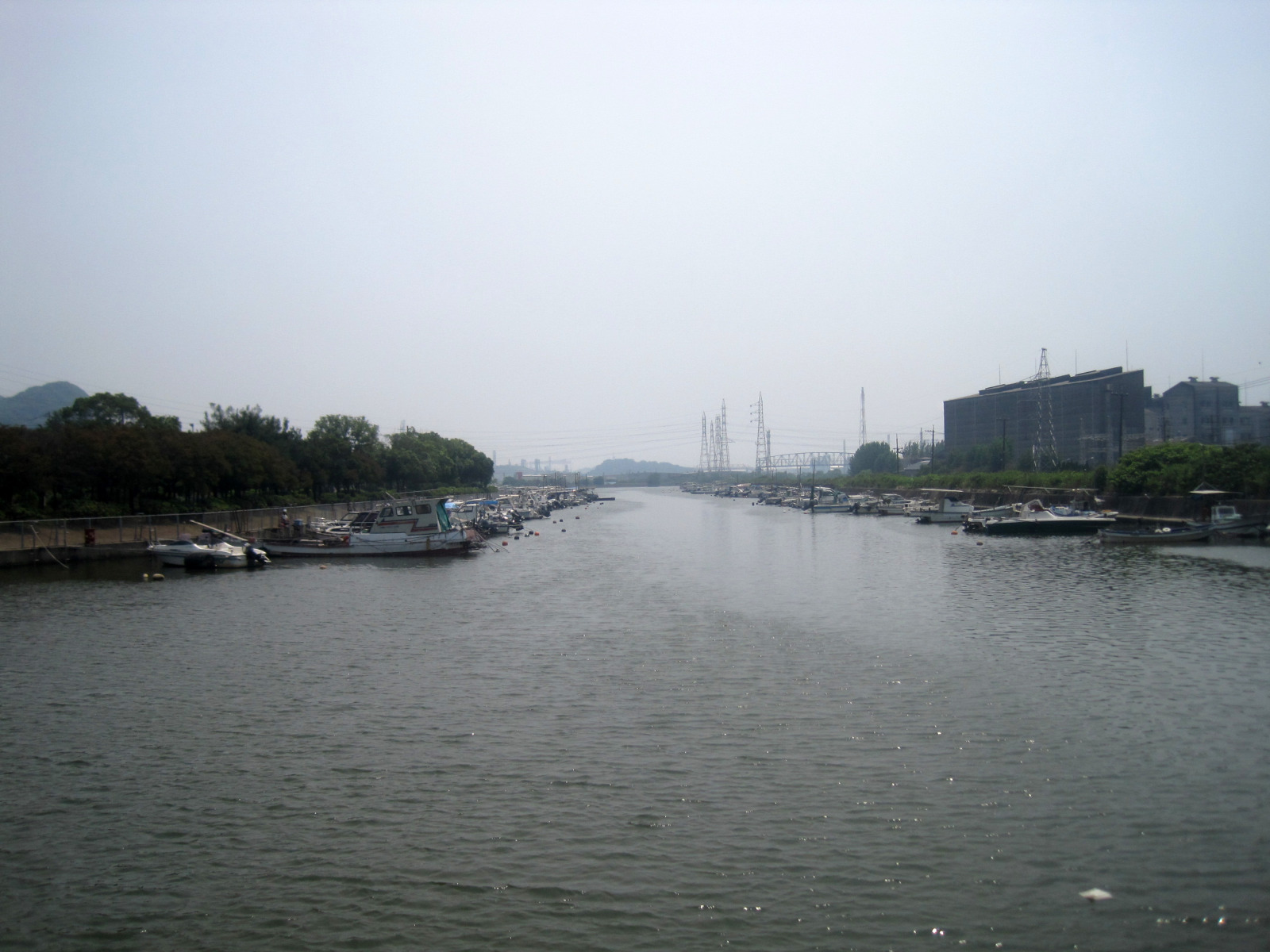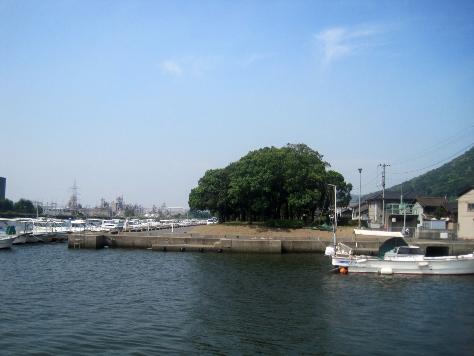 ここは呼松水路と呼ばれているようで・・・ほんの向こうは工場地帯です。そして,水島コンビナートの公害については,最初,農作物とともに,呼松で獲れた魚が奇形であったり,臭かったり・・そして,呼松地区に喘息その他の患者さんが非常に沢山でた,また,当時は,煙突がら炎が昼夜を問わず出ていて,それで眠れないとか。。。いろいろ出てきた地区です。