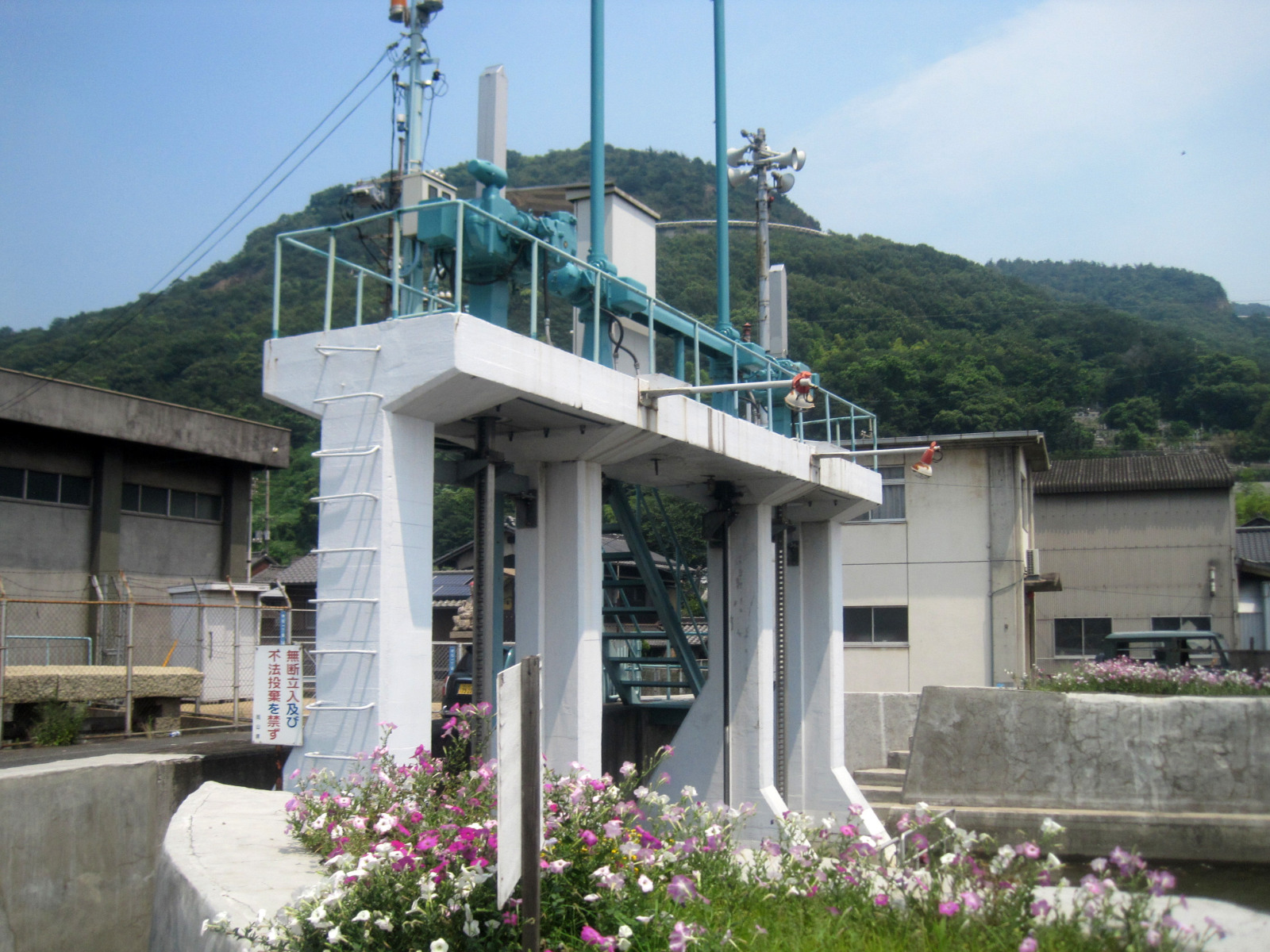 水路の途中・・・工場地帯から呼松に入るところには水門があります。