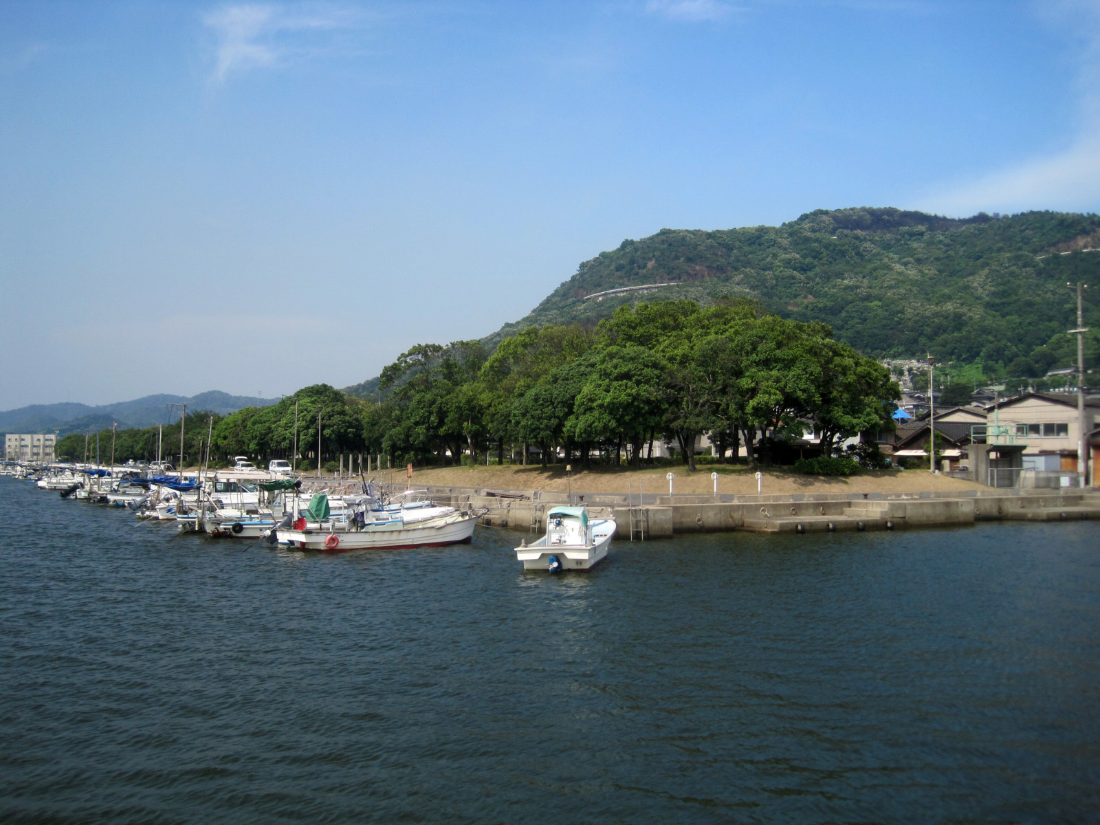 【福田南東部の鴨ヶ辻山西麓の海沿いにある呼松港を中心とした地区で、古くから釣漁と網漁が盛んな漁村であった[1]。明治初期までのの児島郡呼松村(よびまつそん)である。福田地域内でもっとも古い地区で、地名は、同市児島林の熊野権現勧請にまつわる伝説に由来するともいわれるが確かでない。また、伝承では西の沖にあった王島(古くは大島とも。現在の王島山)からの移住者の集落が期限とされる。同島には、承久3年に頼仁親王が児島配流の際に寄留したとの伝承がある。江戸時代は天城池田家の所領(天城領)で、、水島灘に面する瀬戸内有数の漁港として知られ、タイ、サワラなどが名物であった。『吉備温故秘録』には、児島郡呼松村、海辺山寄の村で岡山まで13里半、陸路7里、田畑10町3反、家87軒、男女692人、船39艘、四季共に漁猟にて渡世す、とある[1]。慶長9年の検地帳では「よびいまつ」とあり、石高71石余り、田2町反余り、畑7町7反余り、屋敷地3反4畝余りとある。江戸期当初は備前岡山領であったが、宝永頃には岡山領家臣の天城池田家の領地となる。『備陽記』では、享保6年の田畑は10町3反余り、家数87軒、人口692人、船39艘とある。文化年間の『岡山藩領手鑑』によると当時の石高は91石余り、直高171石余りで天城領、田2町余り、畑8町3反余り、樋1ヶ所、井戸38ヶ所、石橋3ヶ所、育麦蔵1軒、家数136軒、人口1537人、寺1院(安楽院)、牛13頭、酒屋1軒、船大工・桶屋各1軒、船151艘、他に肥船16艘と記録がある。『備前記』では、漁業を渡世とし、ボラ網漁・サワラ網漁・アミ漁・イナ漁などを行い、冬には流モチで鴨を獲っていたされる。『藩法集』によれば、文政13年頃には西は芸州、東は大坂まで漁稼に出、また享保3年までは江戸表役人が西国筋に越した際に上りの加子役を務めていたとしている。文政7年8月、石高111石余りの地で、田畑も少なく漁業を中心に渡世してきたが、家数130軒余り、人口1600余人という状態であったため、新株別家を願い出て、59軒が許可され、続いて弘化3年に191軒・1770人余りで42軒の新株別家が認められている。また、『撮要録』には鴨ヶ辻山は福江村・林村・広江村と接しているため、文政2年に山境論争が起こったとある。『風騒紀聞』には、慶応2年4月の備中騒動の長州第二騎兵隊逃走事件は、呼松村中を震撼させた。明治8年、王島の帰属を巡り海を挟んで西側にあった松江村と対立したが、両村が合併して王島村(おうじまそん)となったが、農村の松江と漁村の呼松の折り合いがつかず同12年に分村した。明治22年、呼松・広江の2村が合併し呼松村と新設、同22年6月1日に村制を実施し、当地に役場が置かれる。同37年4月に呼松・福田・福田新田の3村が合併し、新しい福田村(のち福田町)を成立する。近代には、呼松西沖合が干拓・埋め立てされ水島工業地帯が造成され、呼松港は細長い水路状の入江(呼松水路)の奥に位置することになり、景観を一変した。昭和中期には、水島工業地帯の公害問題が発生し、重油によるとみられる海上汚染による異臭魚問題、工場廃液による死魚の増加や魚族の減少により多くの漁場を失った他、、埋立による港機能の縮小などもあいまって漁獲高は減少し、転廃業者が増加した。なお、現在も呼松港は岡山県の管理漁港であり、現役である。】だそうです。 |