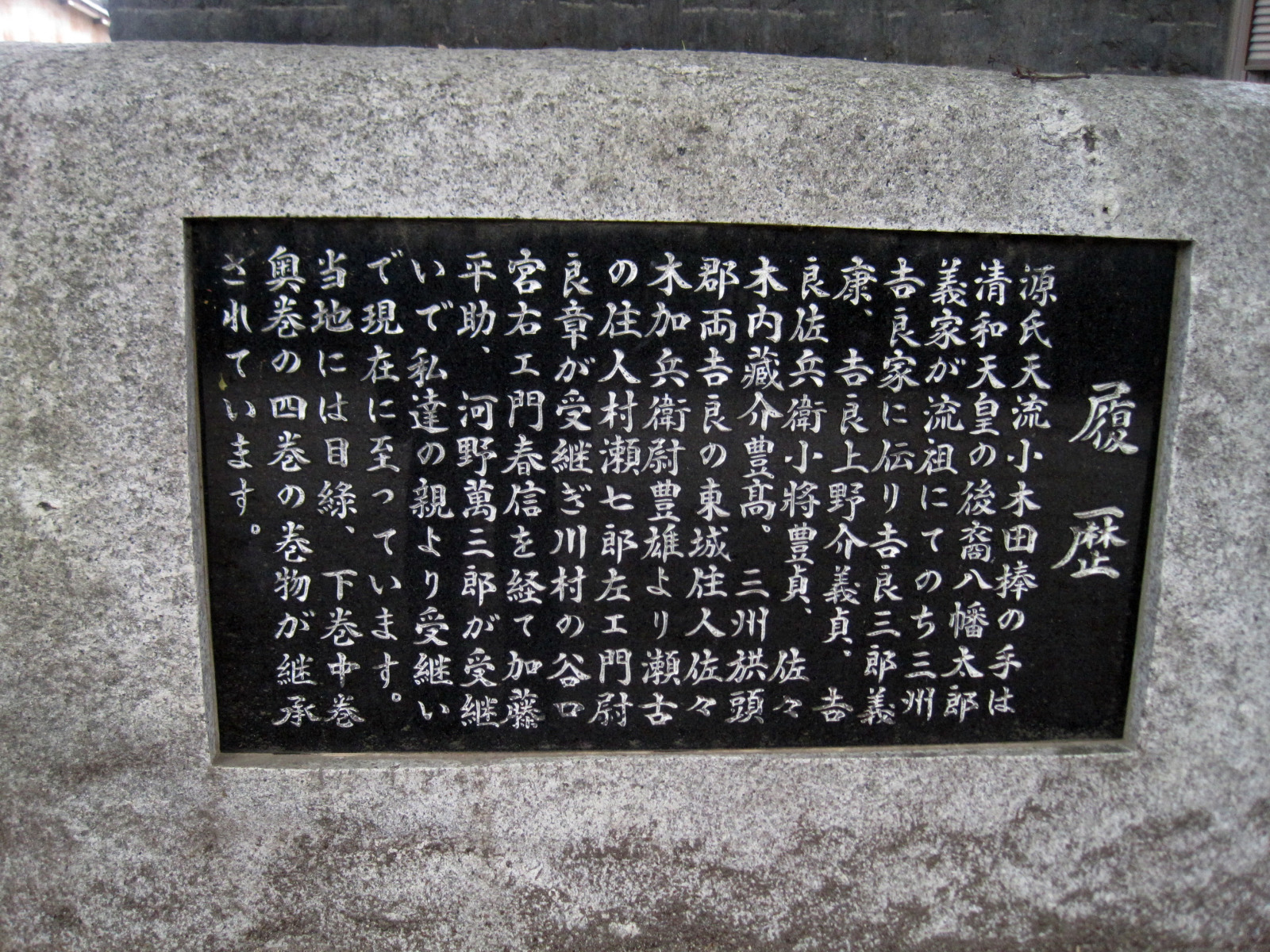 【明治時代から、地域に伝わる戦国時代の武将源善家を流祖とする「源氏天流」の実践的な古武道の型です。毎年秋に小木田神社で奉納されています。長い棒を巧みに操り、神社の社殿前で息のあった技が披露されます。】が,有名なようです。