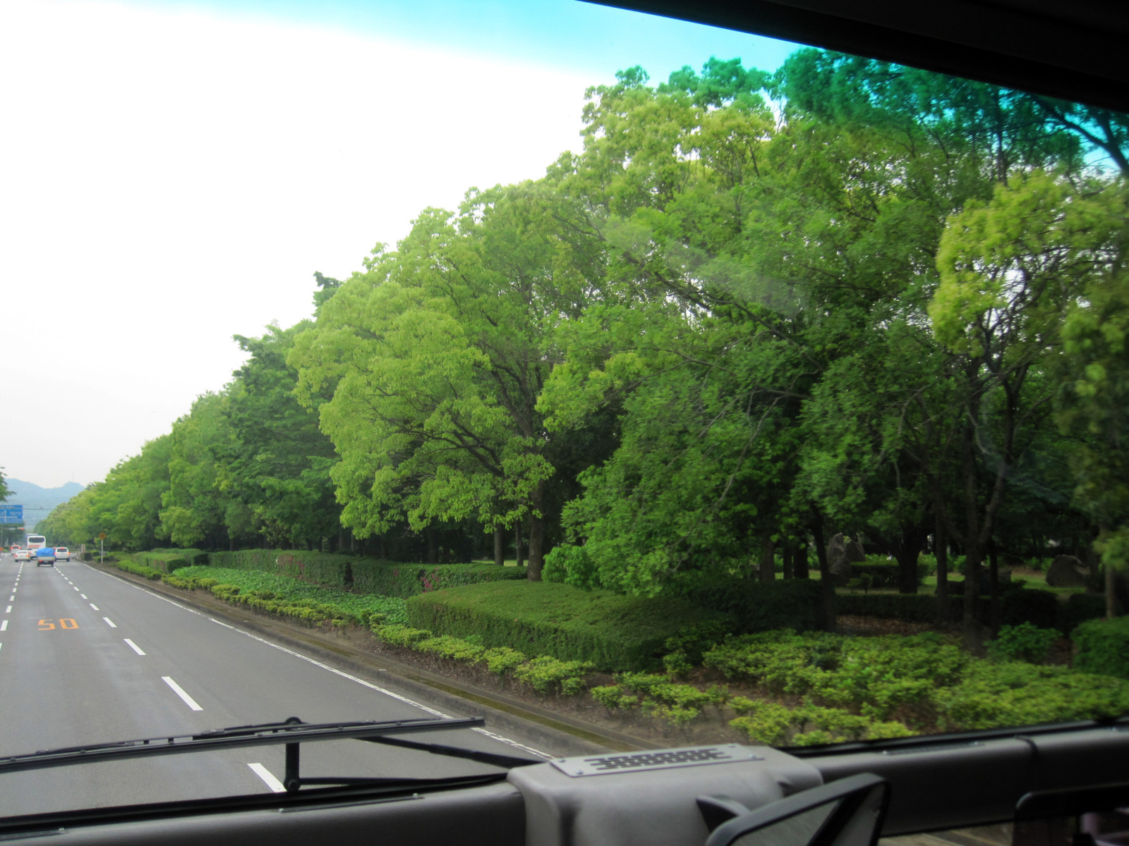 緩衝緑地帯沿いにバスは進みますが・・これが緩衝にはならないのですよね!