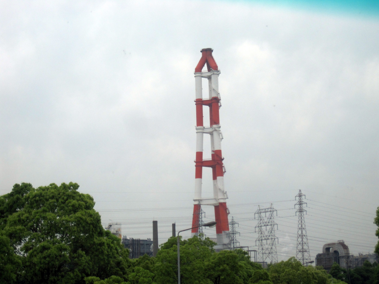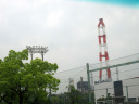 そして,パイプラインが行き来する化学工場地帯〜三菱化成の集合口煙突も,下から見上げると,さすが,180mです。