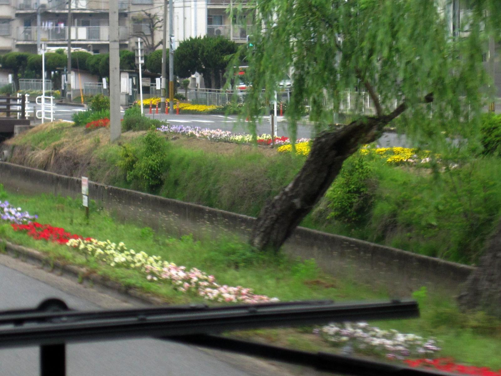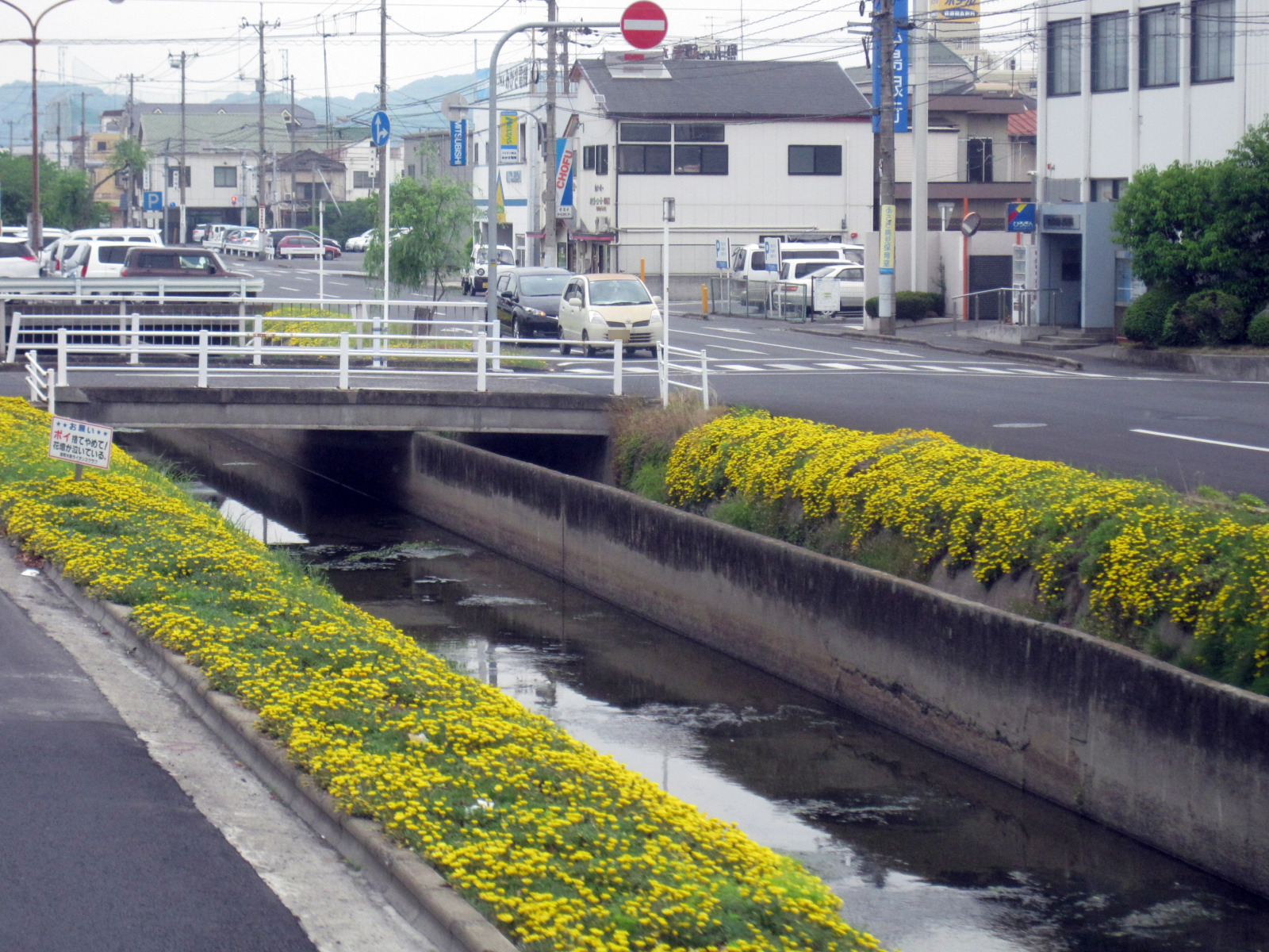 真ん中に境が・・向こうは工業排水,こちらは農業排水です。でも,最近はフラワーロードってことで,花ざかりです!