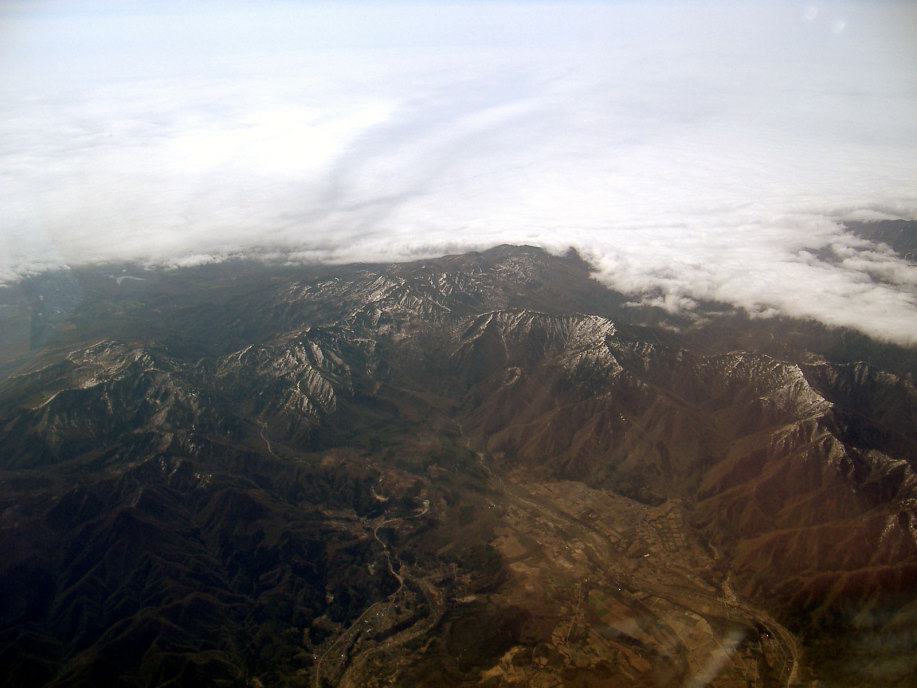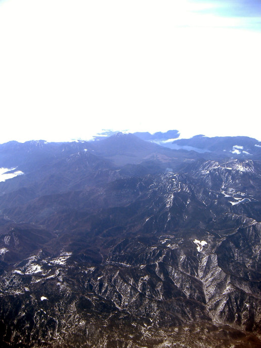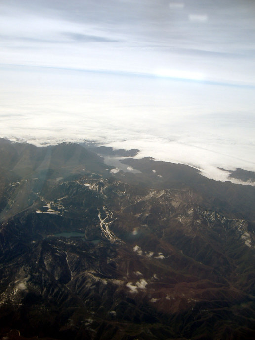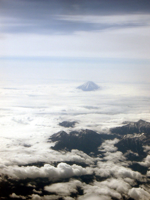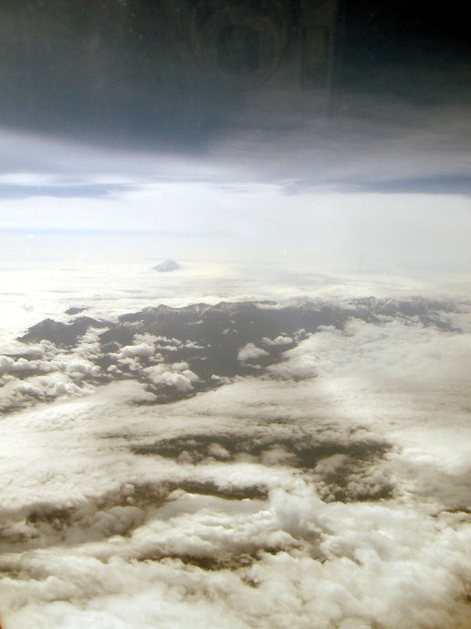 雲から顔を覗かせた山頂には,湖が見えます〜〜何処?
