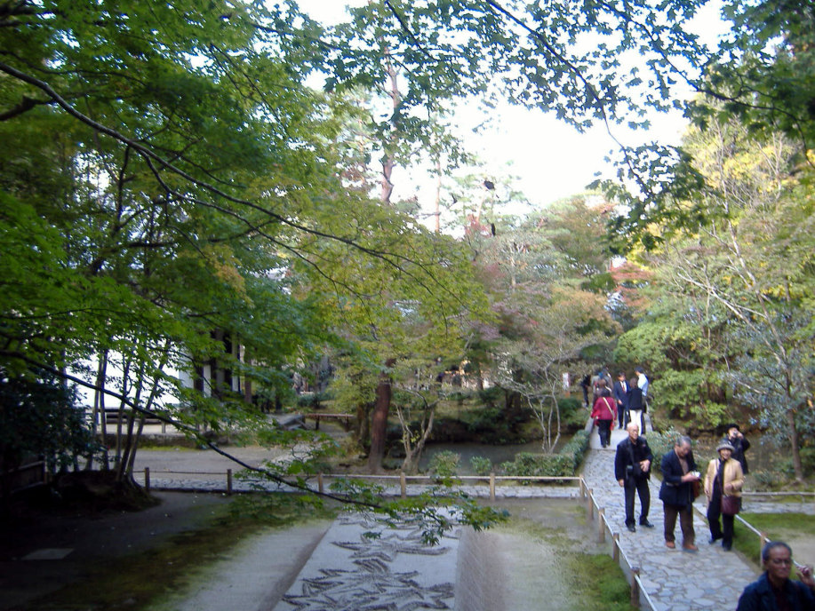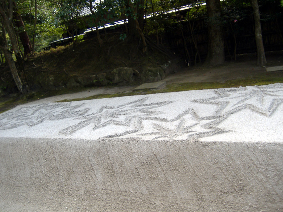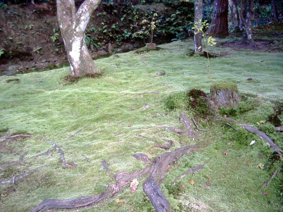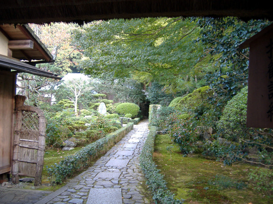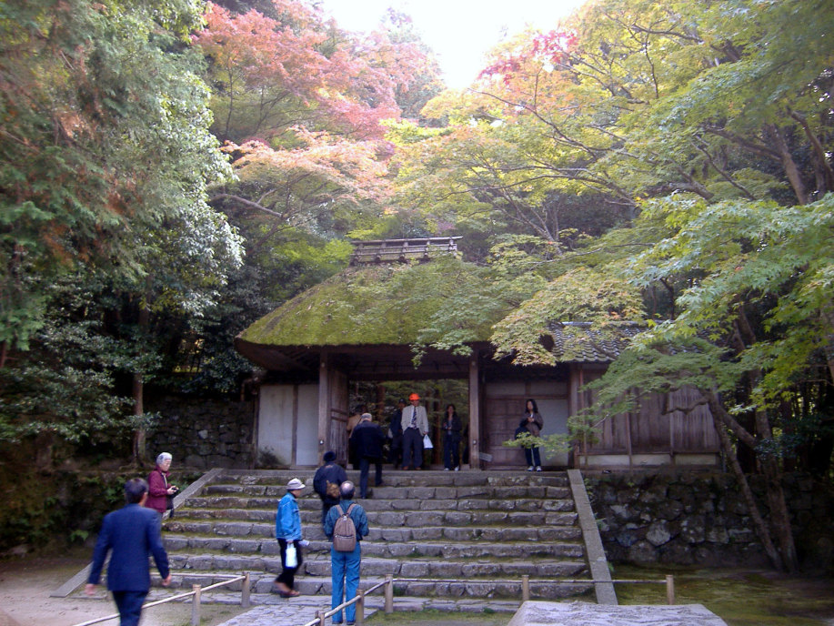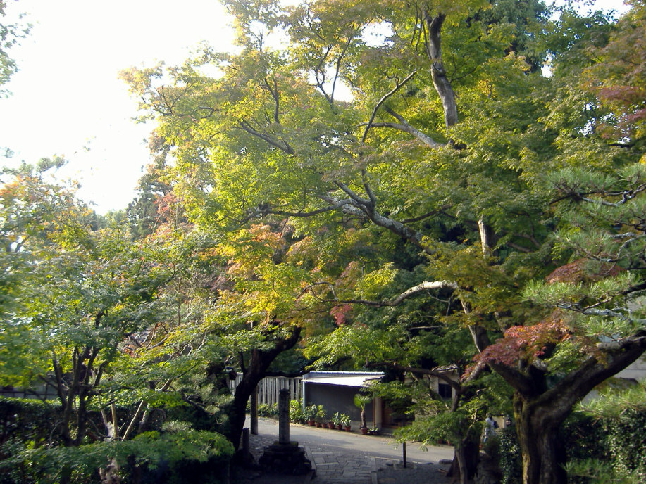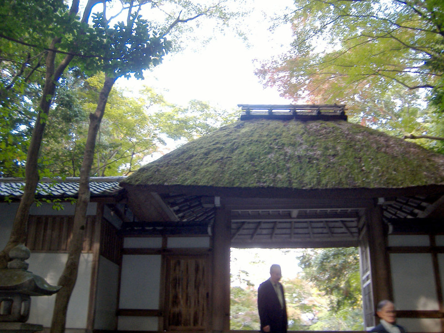 | 安楽寺さんから,少し上ると,法念院さんです。苔生す山門・・・白砂壇の趣向も良い感じでしたね。東山山系を背にしていて,深さと静けさを感じさせてくれました。 |