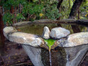 ↑: 葉っぱでで,水が落ちる様子に,西村さんや,川西さんは,実は感動! |