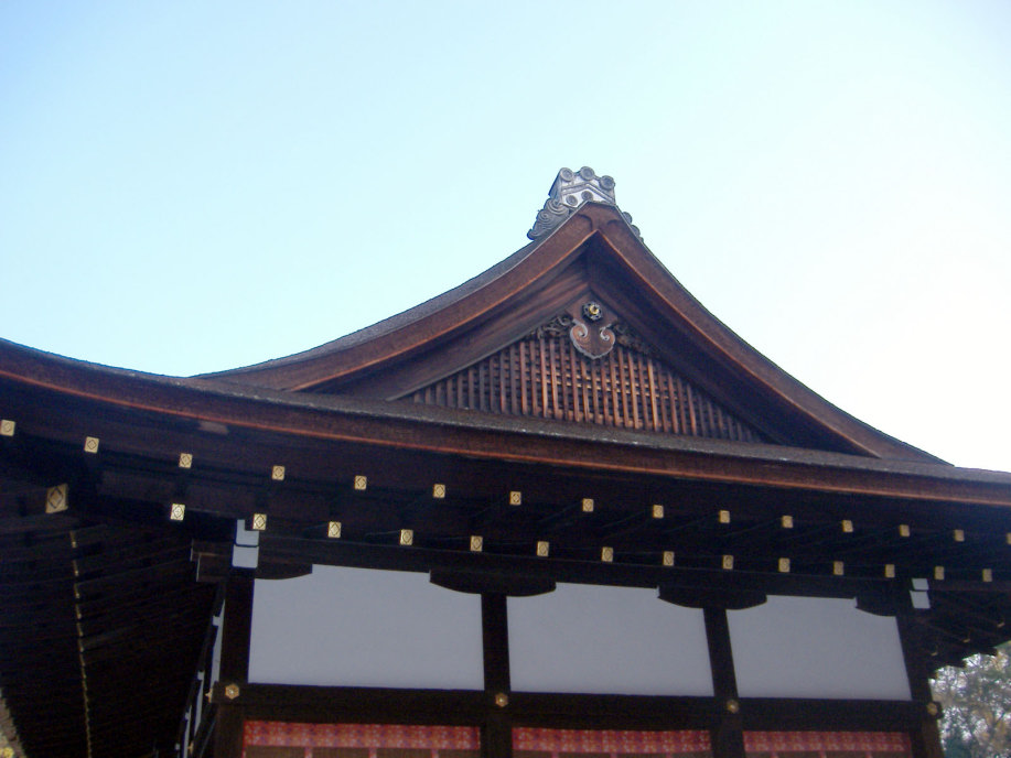本殿は::本社のHPによりますと「神社建築の代表的な社殿。亀腹の上に井桁を組む高床式で橋がかりを付す古代様式の遺風がみられる。 本殿二棟はいずれも国宝で、東殿には玉依媛命(たまよりひめのみこと)、西殿には賀茂建角身命(かもたけつぬみのみこと)の両御祭神がそれぞれまつられている。」そうです。 |