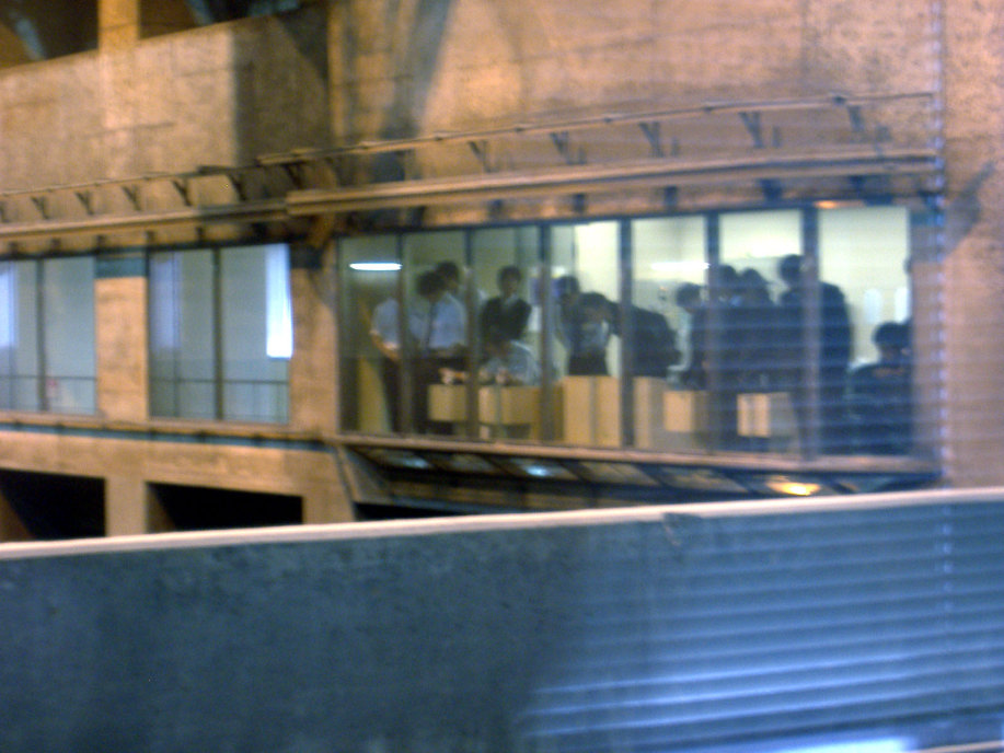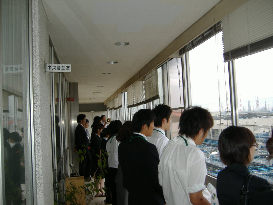屋外の施設は,4階から眺めて説明を聞かせていただくだけでした。普段なら,もっと歩いて,時間を取るのに・・・ちょっと,残念! その反応タンクや最初もしくは最終沈殿池の色や匂いや・・・そんなもの全体を体感してもらうってのが,この見学実習の一つの目的だったのに・・・・・・・・・・ |