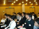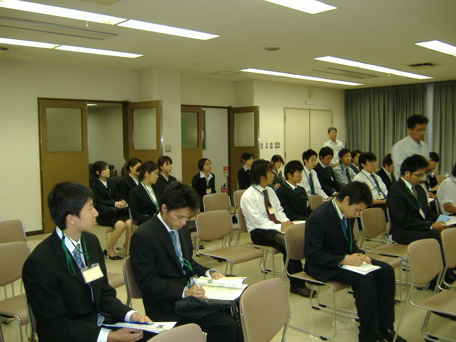 下水処理場でも,まず,お話を聞きます。今年の授業で,時間的に下水のこと,十分に出来なかったかなぁって少し反省しました(大槻)。 |