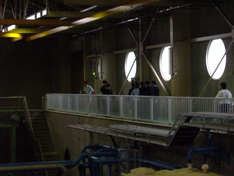 いろいろと見学とお話を聞いて,それでそのあと,うちの班は,下水処理場へ・・・。