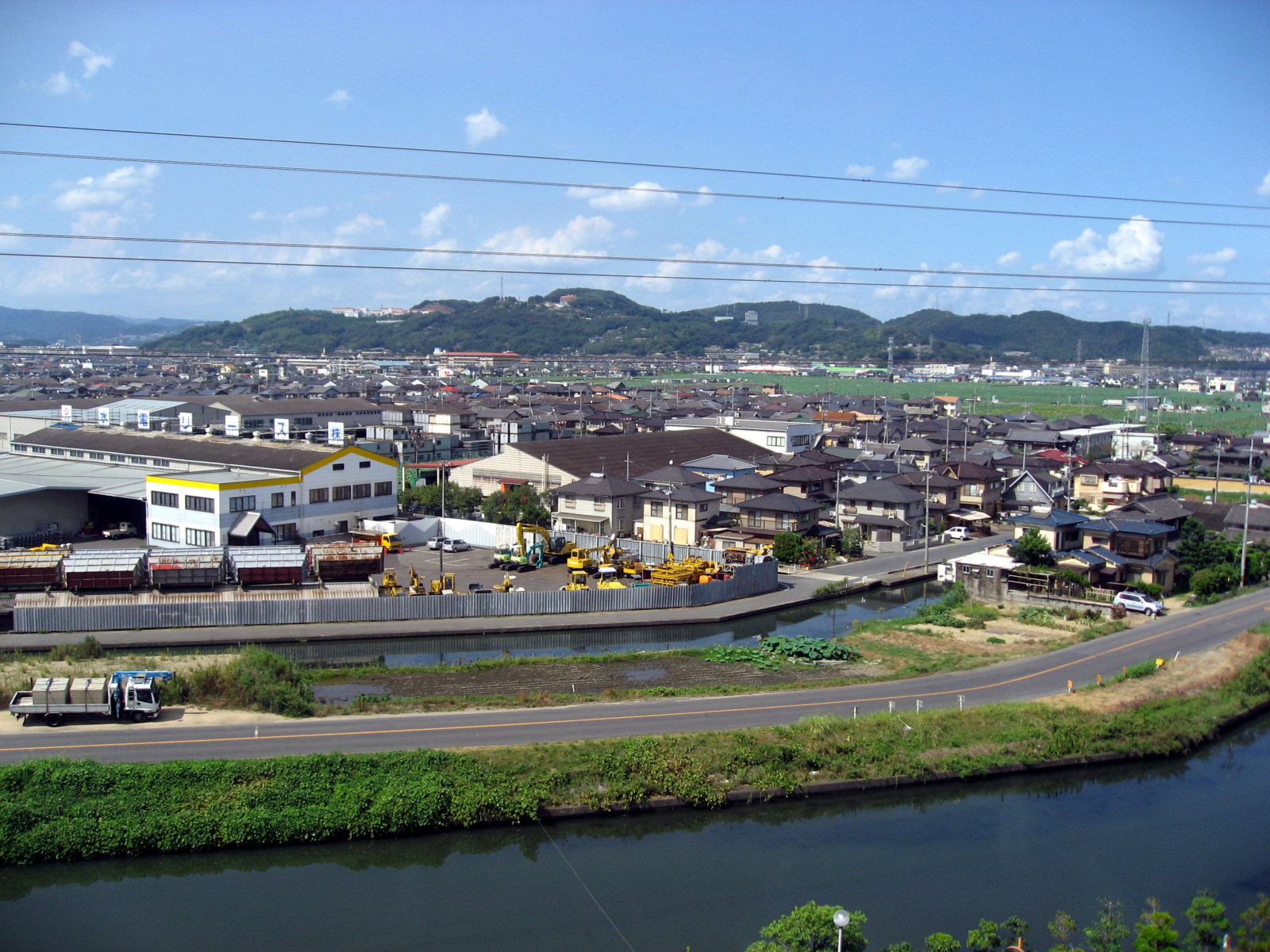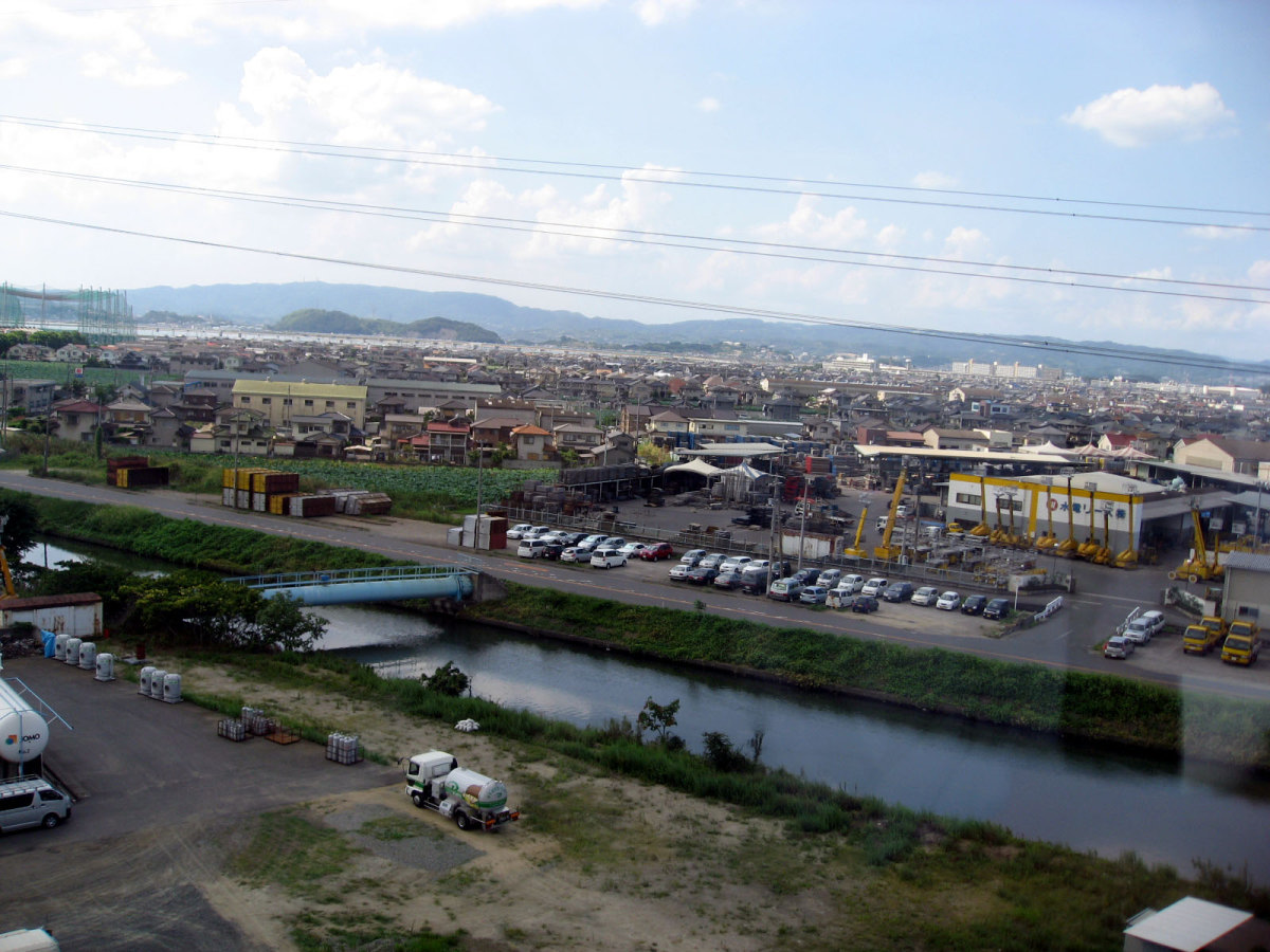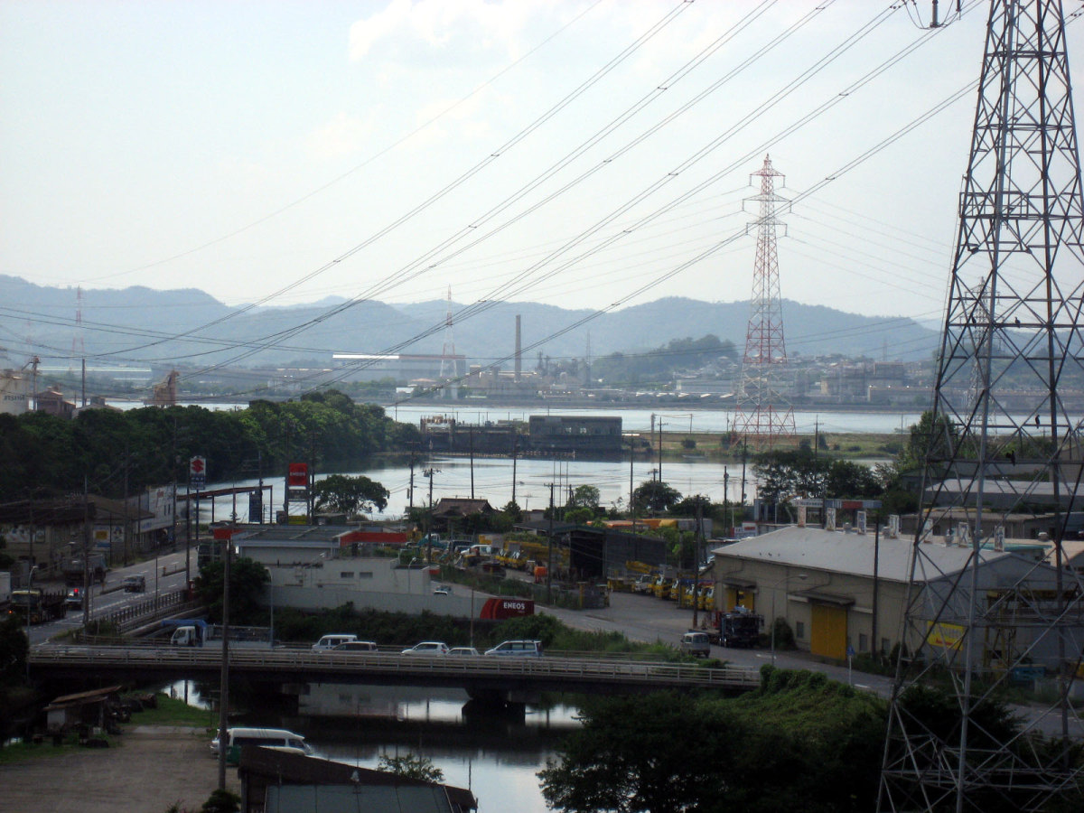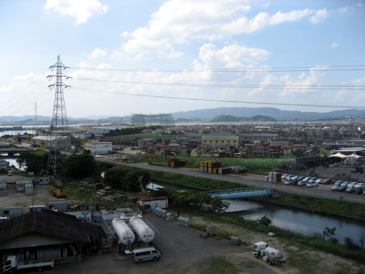 窓の外には高梁川河口やサンピアくらしきなどが見えます。 |