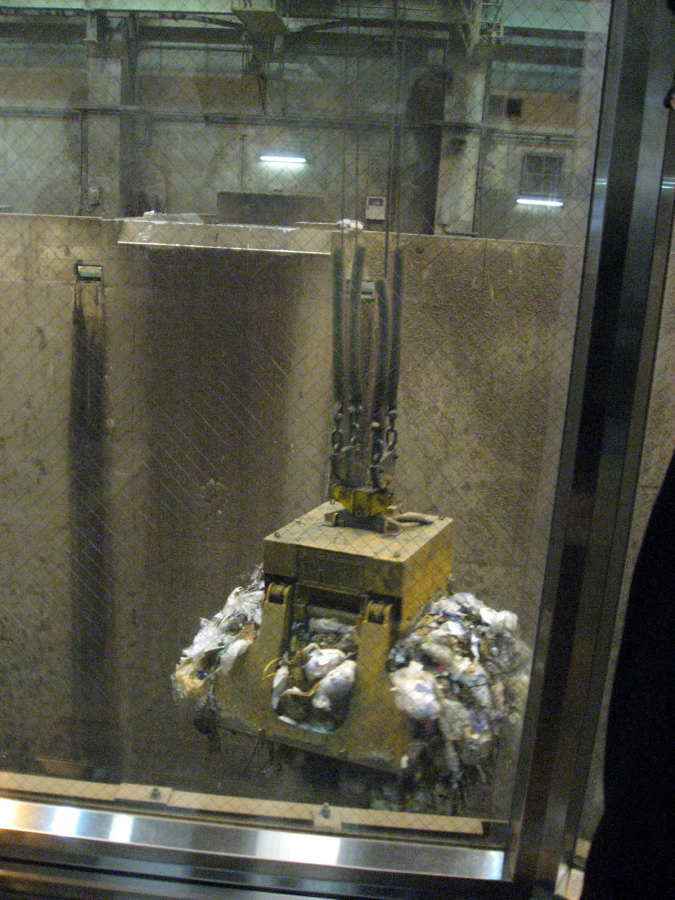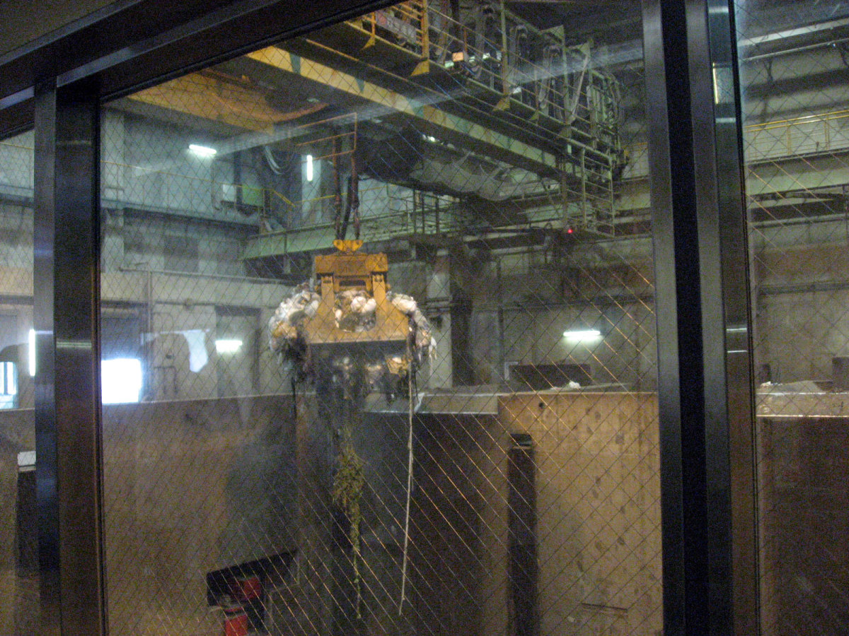 そのほか,清掃工場をおおまかに,全体を回らせていただきます。蒸気で発電して,売電しているとか,なかなか,結構,すごいです。 |