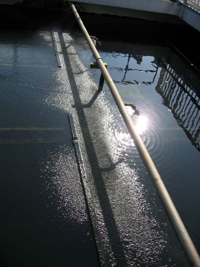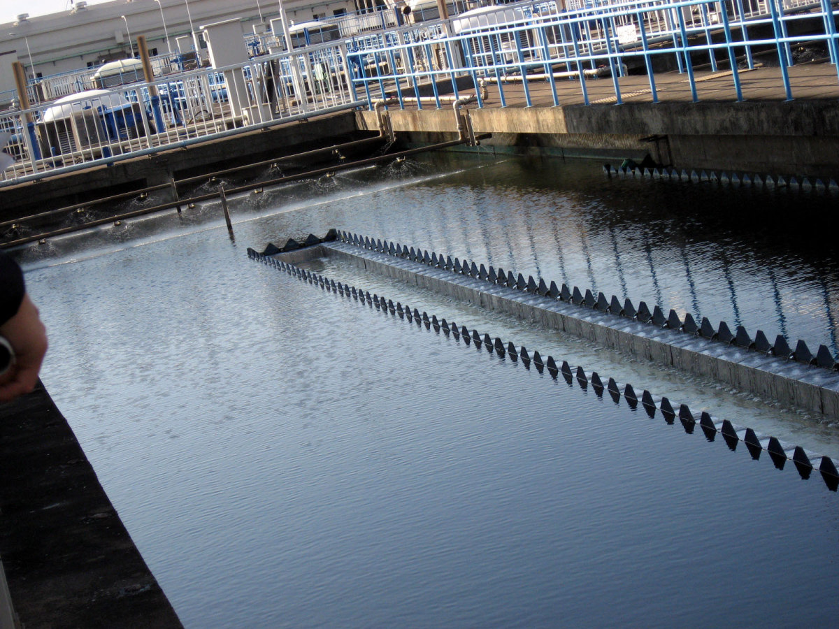 その後,外に出て,実際の現場を見せてもらいます。今回は,所謂,最初沈殿池などの屋内はなく,いきなり外でした。