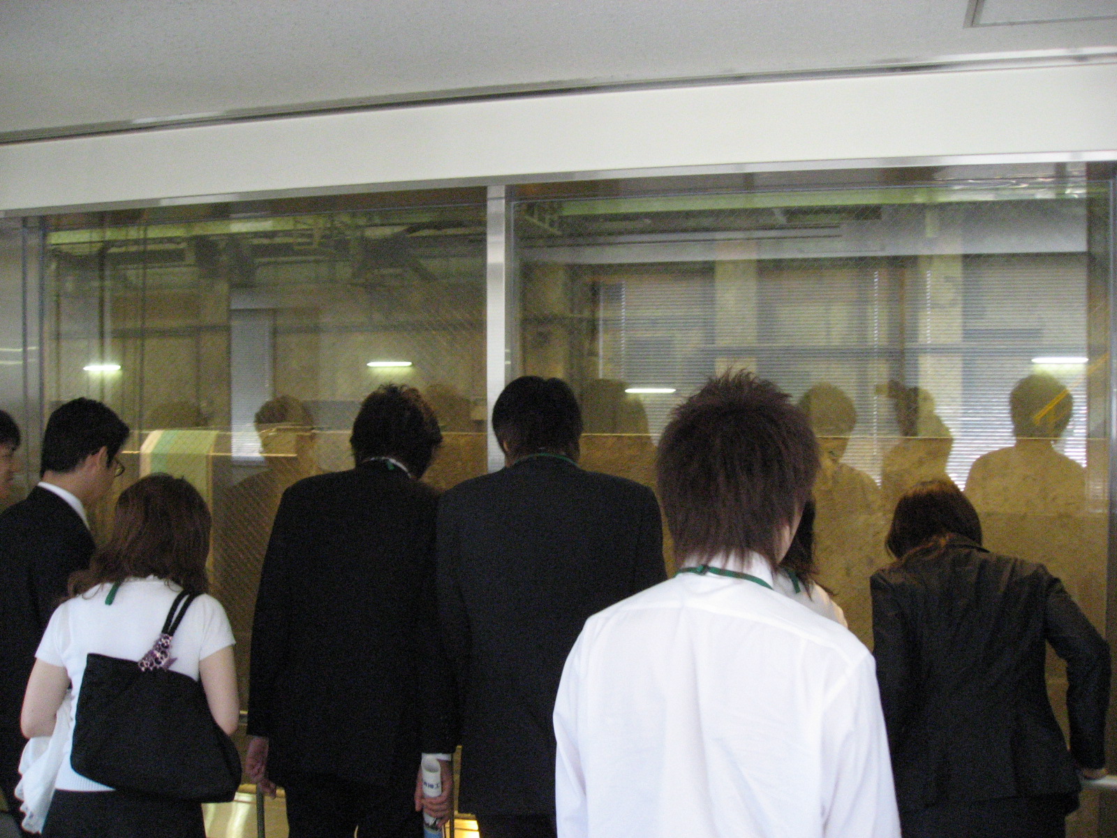 また見学です・・・でも,勿論炉の中の燃えている様子は,見えません・・・モニターで見るだけです。800〜950℃とのことですよね。