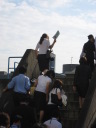 こちらでも講義から始まります・・・そして,ここは外の見学なので,やっぱり,雨は困りますね・・・今年の皆は日ごろの行いがよいのでしょうか? 前回も今日も好天でした。 |