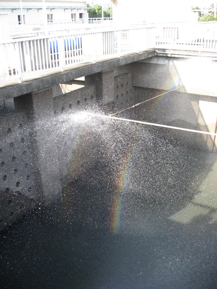 | ずっと,処理池を見学させてもらいます。水はこの間を24時間かけて流れるそうです。 |