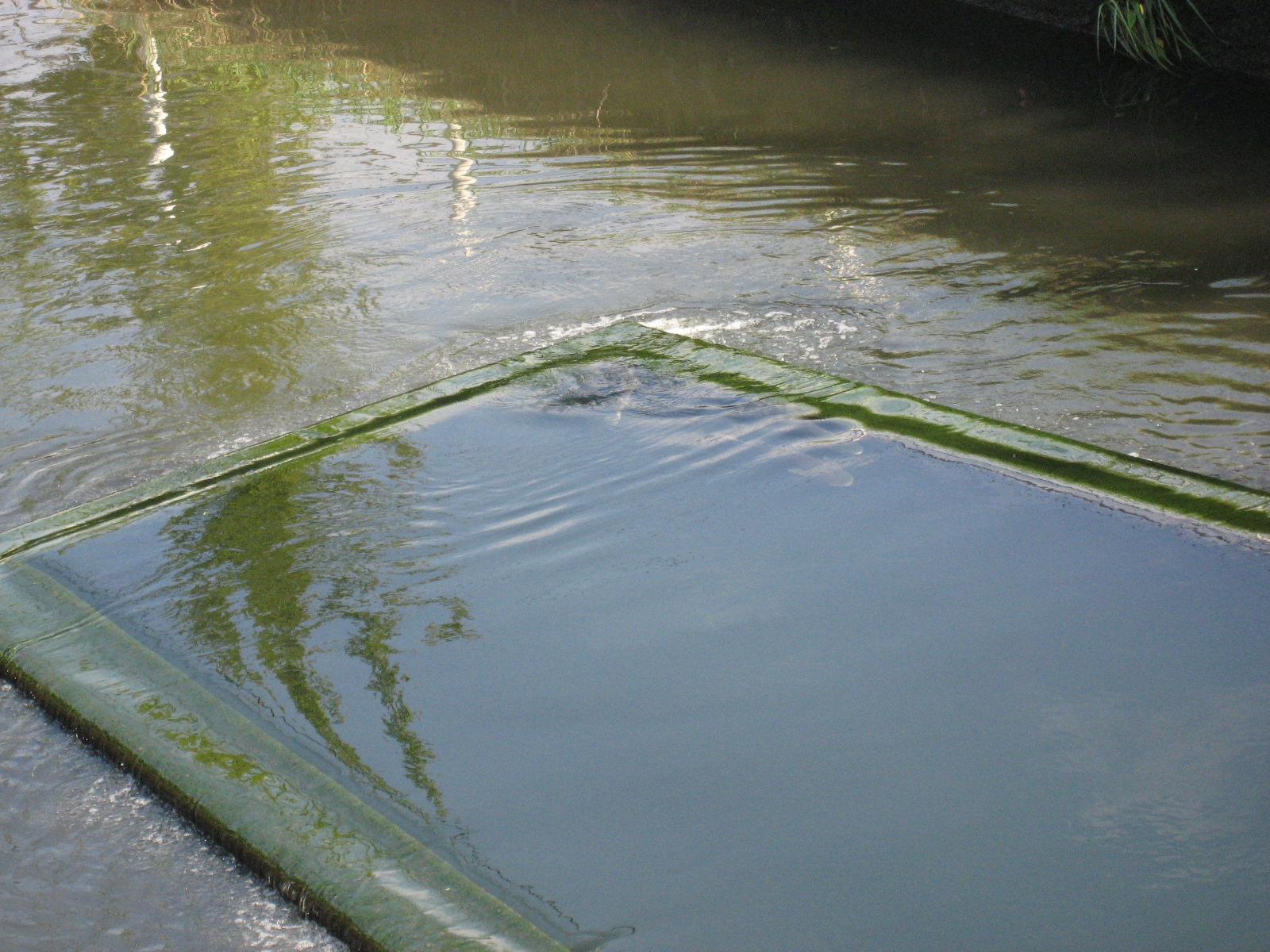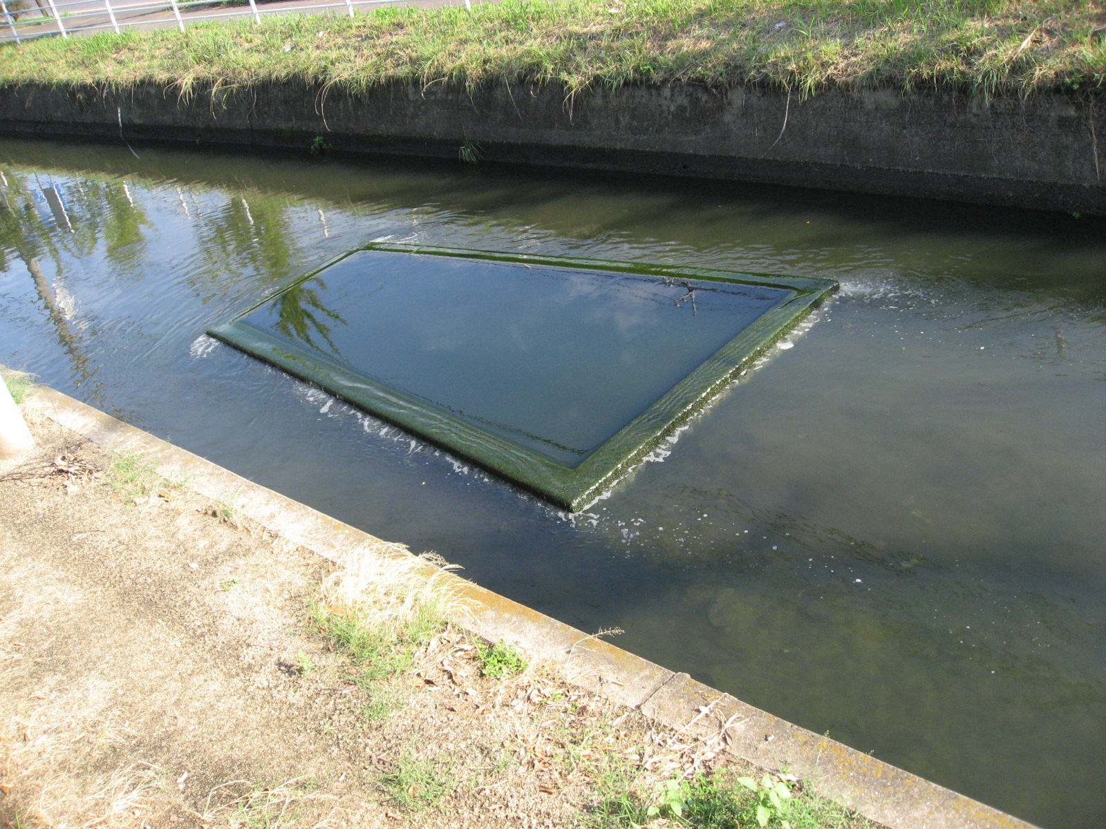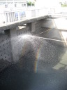 で,ここから最終的に塩素処理された水が放出されています。よく観ると魚も居ます。 |
