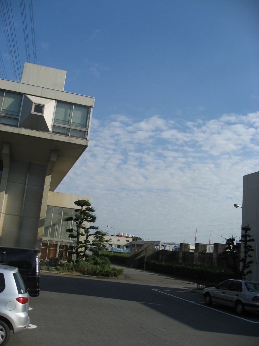 清掃工場の窓からも青い抜ける様な空が見えていました。 |