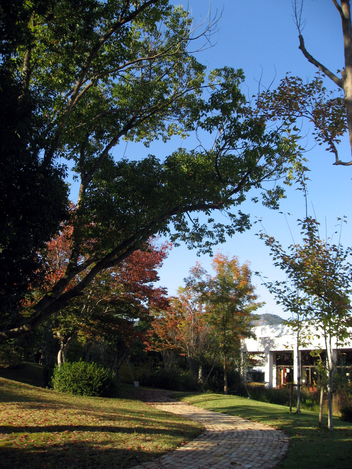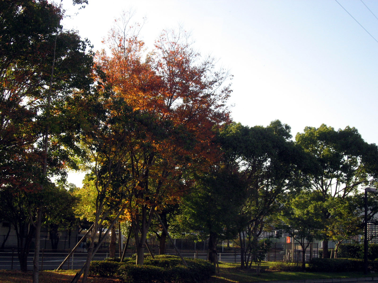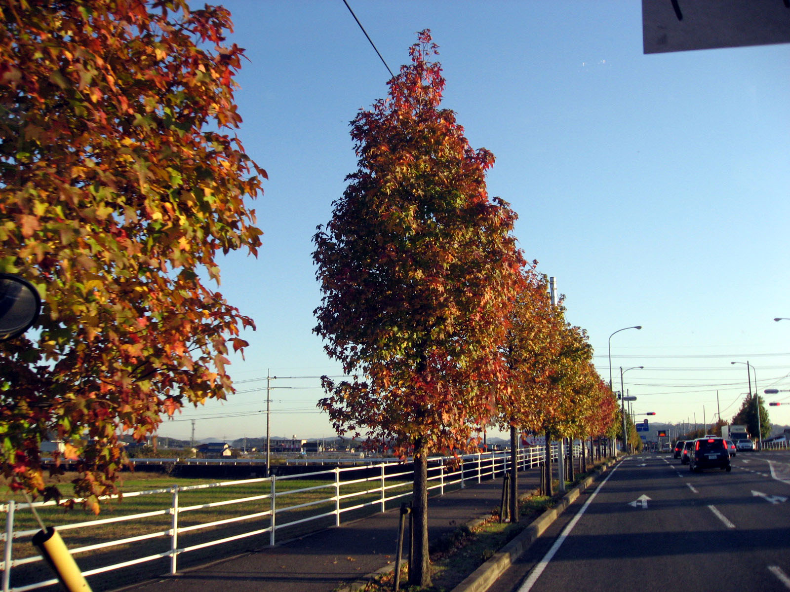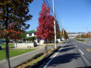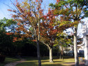 | 庭の秋色を後にして・・・西日に向かって高速を進みます。 倉敷インターを降りて・・・街路樹の秋を後に見やって・・・・大学に到着でした。 |