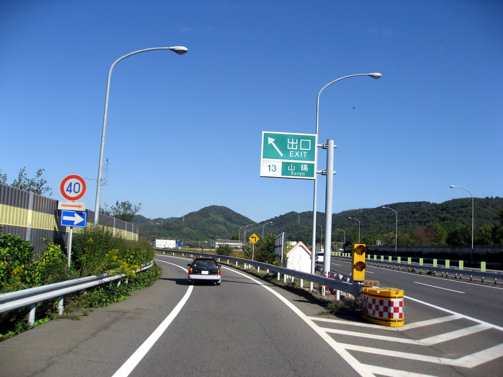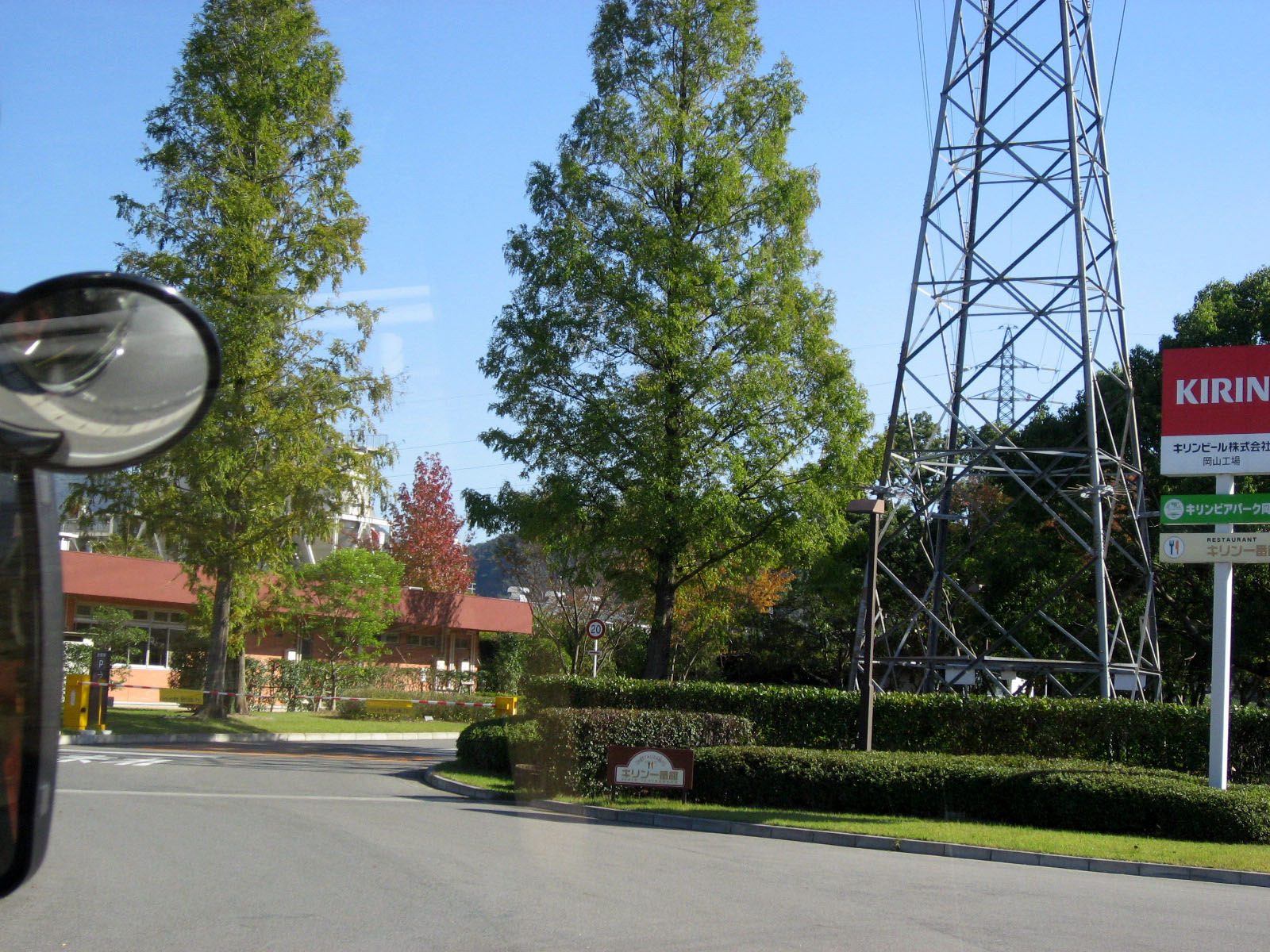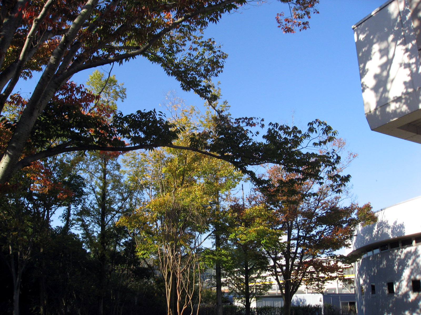 | 庭の秋色を後にして・・・西日に向かって高速を進みます。 倉敷インターを降りて・・・街路樹の秋を後に見やって・・・・大学に到着でした。 |