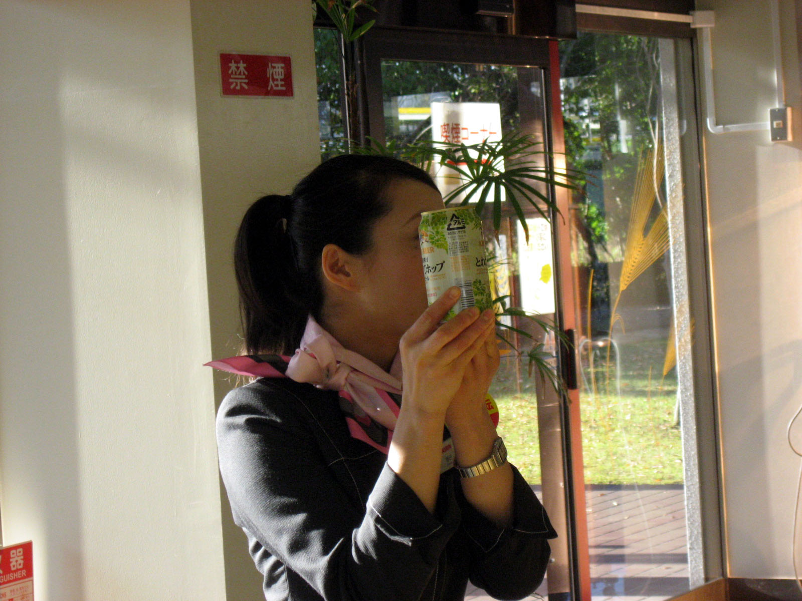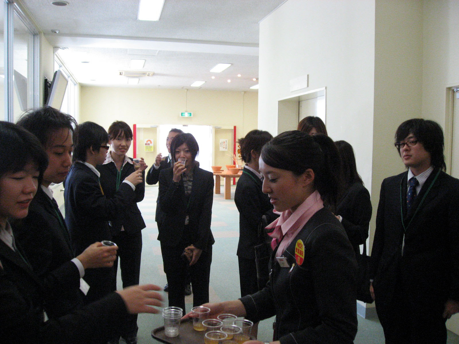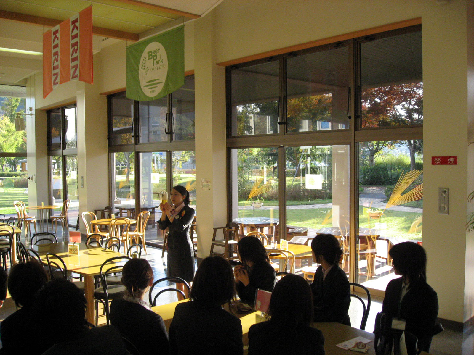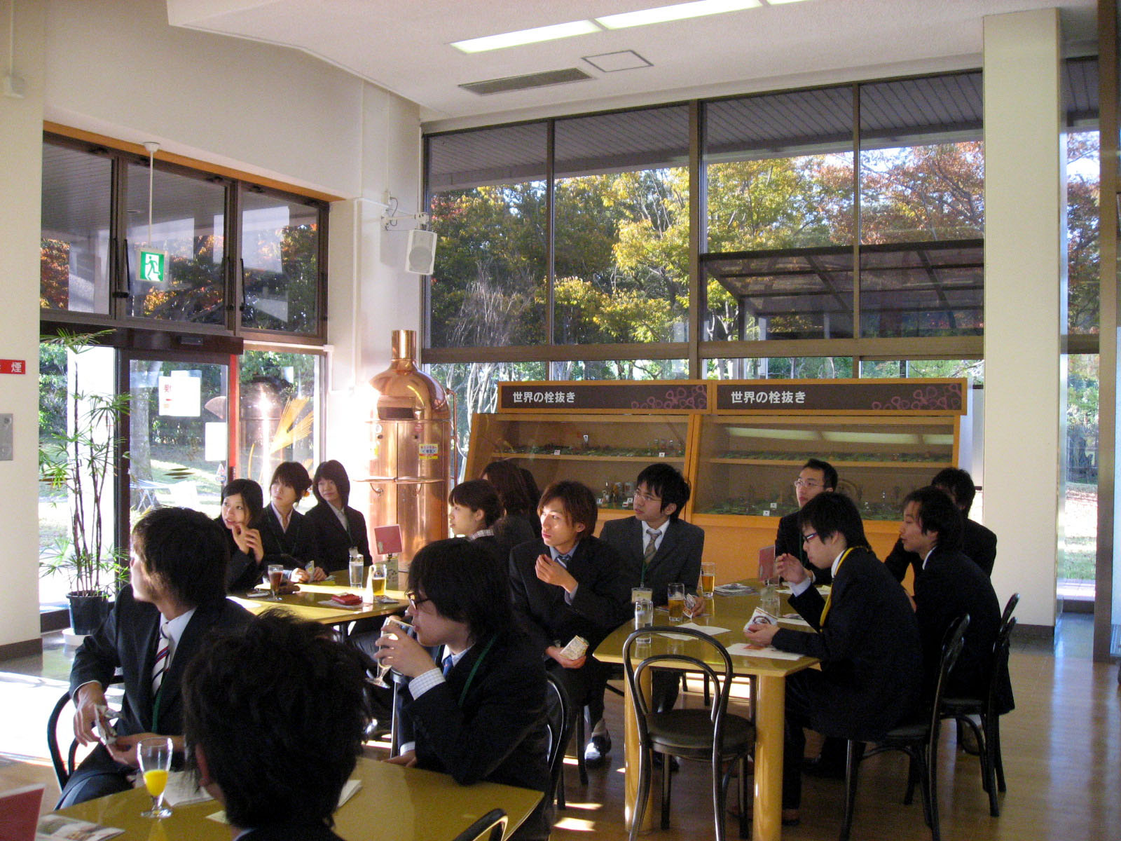 | 講話も終了して・・・・・・中庭を過ぎて・・・最後の工場見学の最終項目の・・・試飲です。 本日発売銘柄もあり・・・ 楽しみは最後にやってきました! |