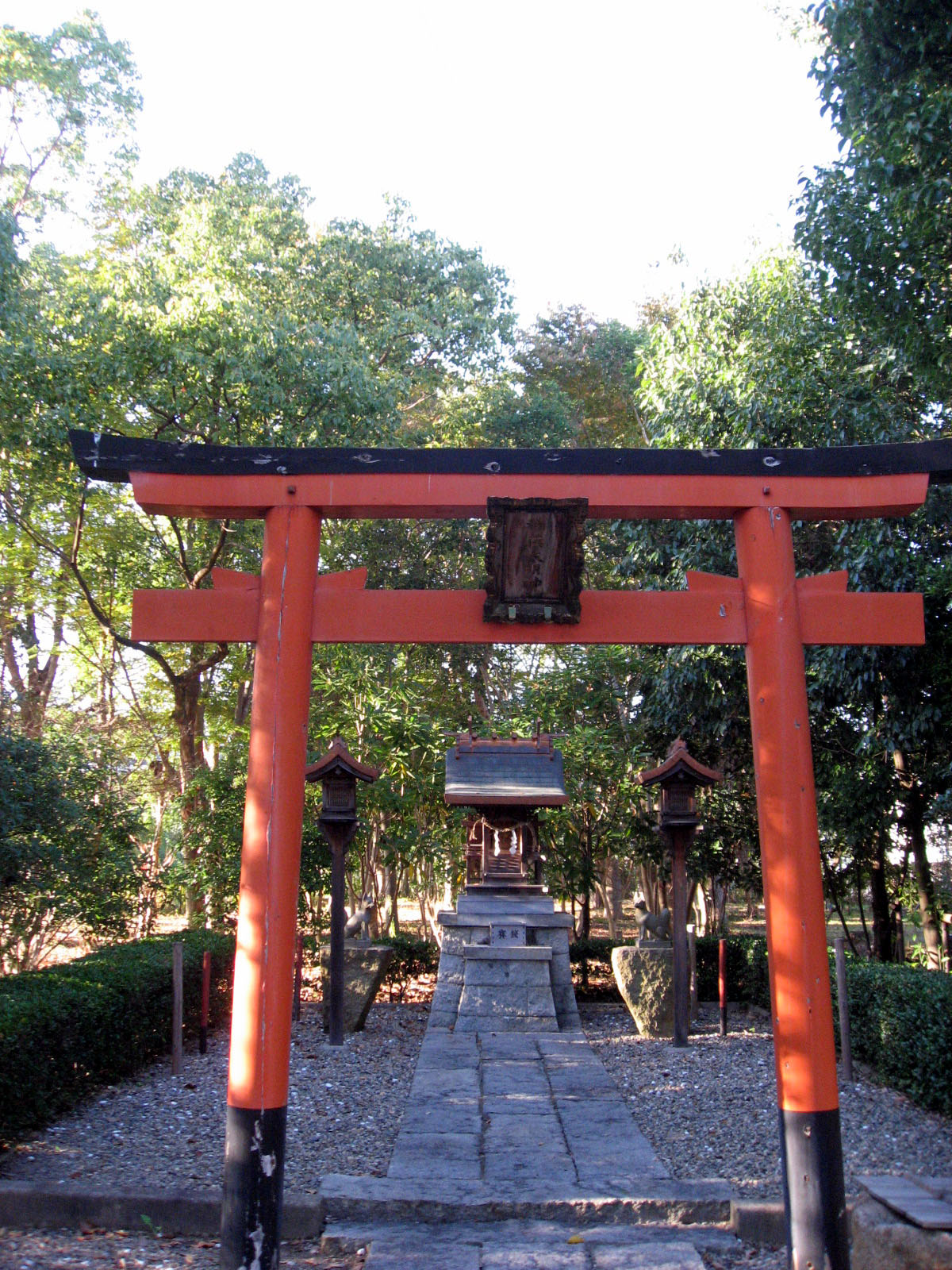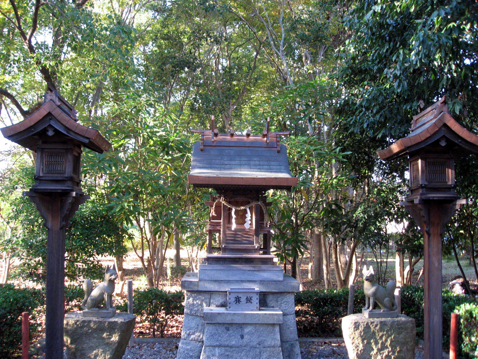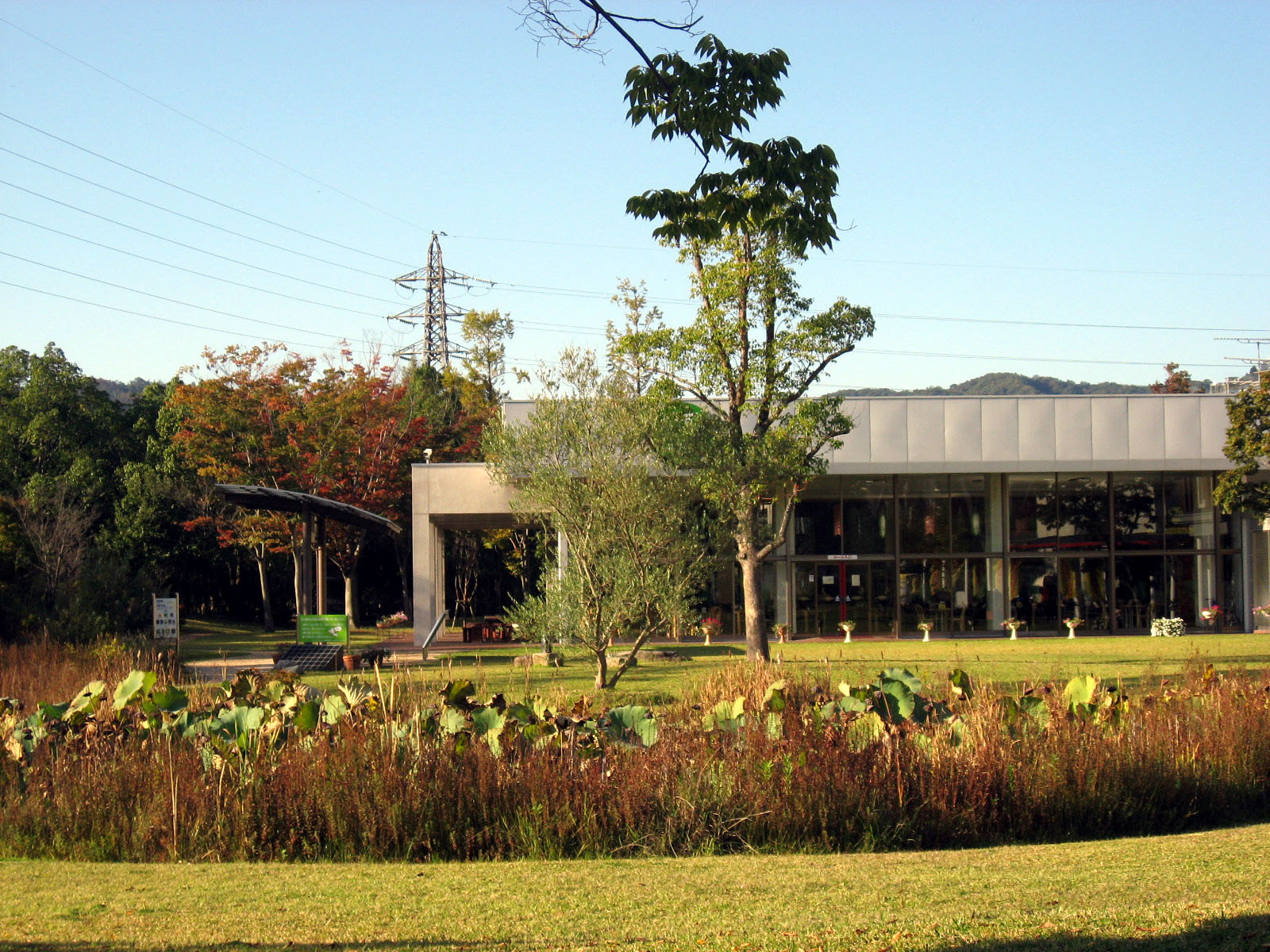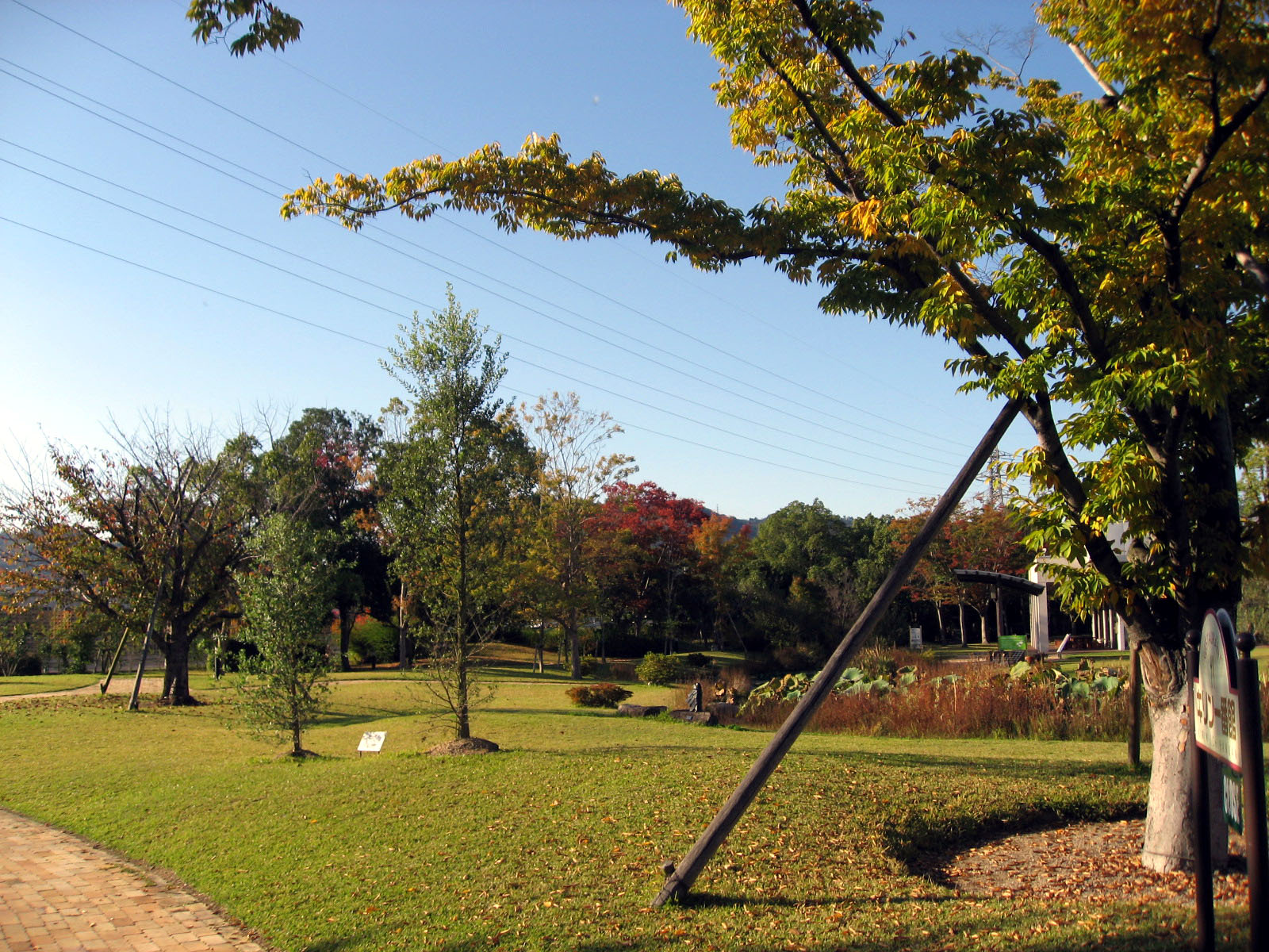 | 庭にはビオトープや神社もありました・・・ 全体的に彩りが秋色で・・この日の青い空と合わさって・・・気持ちを清々しくしてくれました。 |