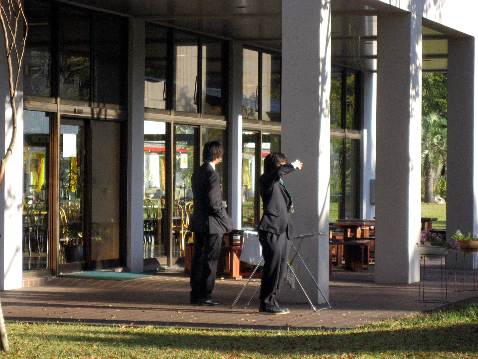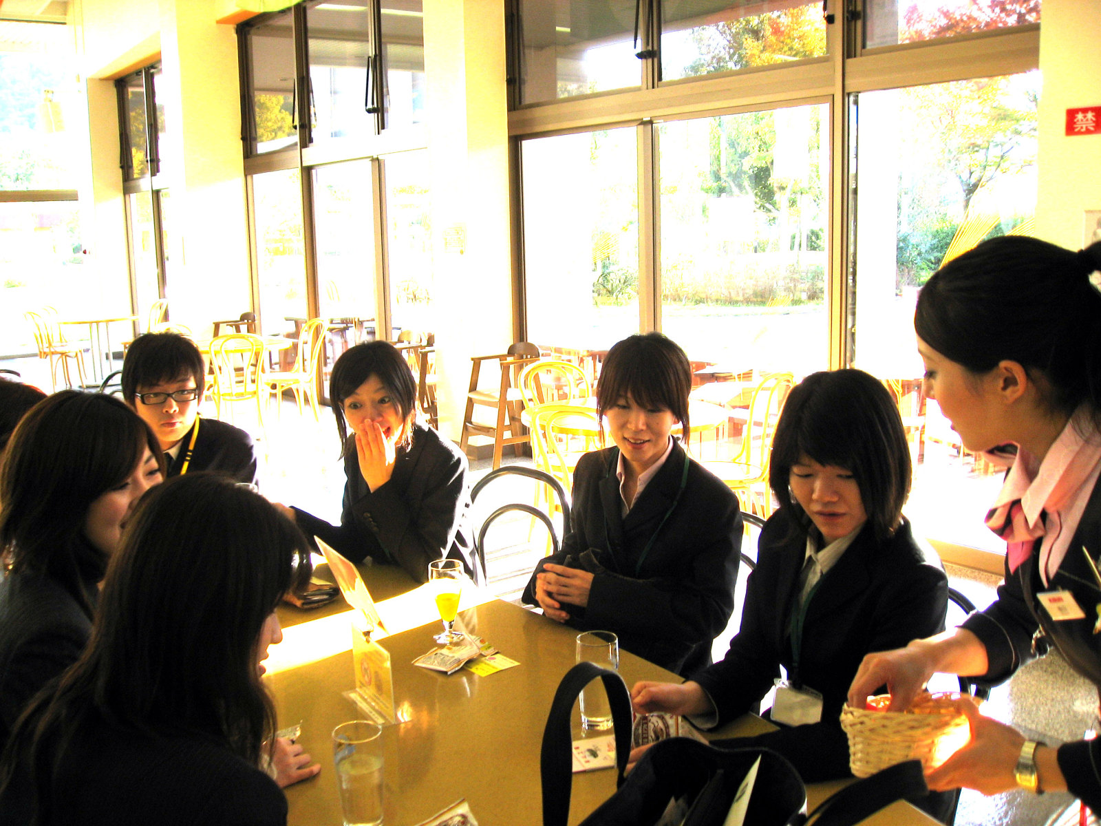| 学生さんも外で,少し景色を眺めて・・・・・後は,講義末試験に驀進のみだものね・・・。 | |||||