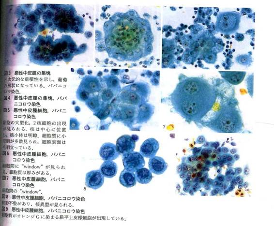 観察される。細胞質に空胞が見られることもまれではない。悪性中皮腫では、集塊の