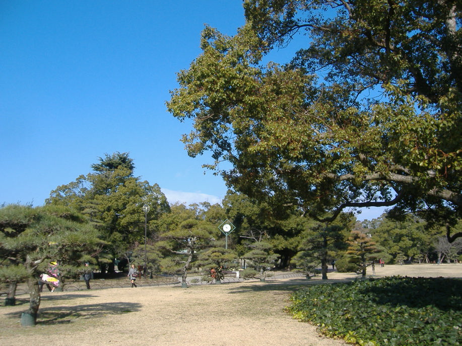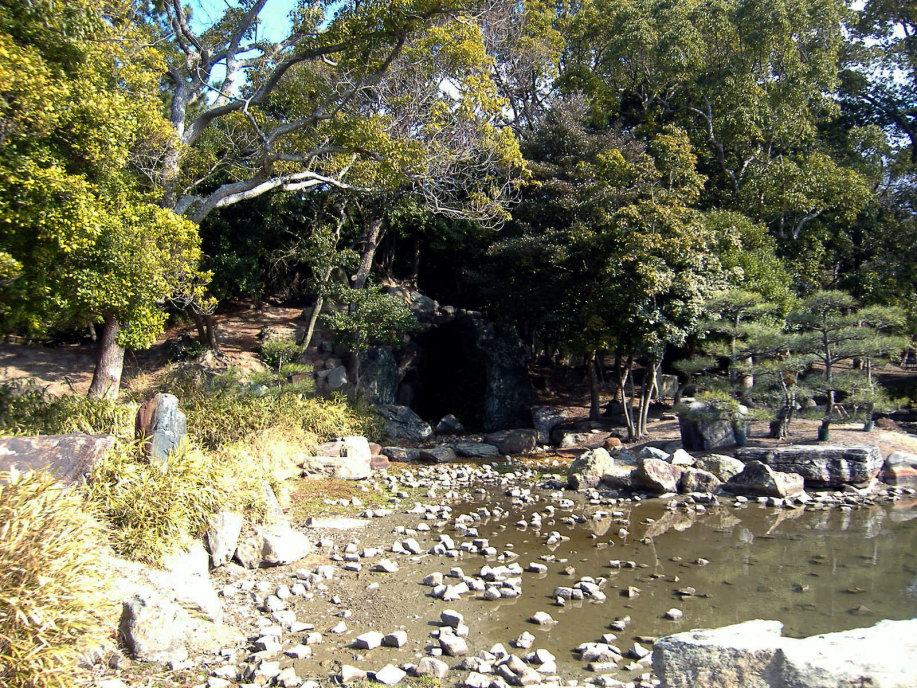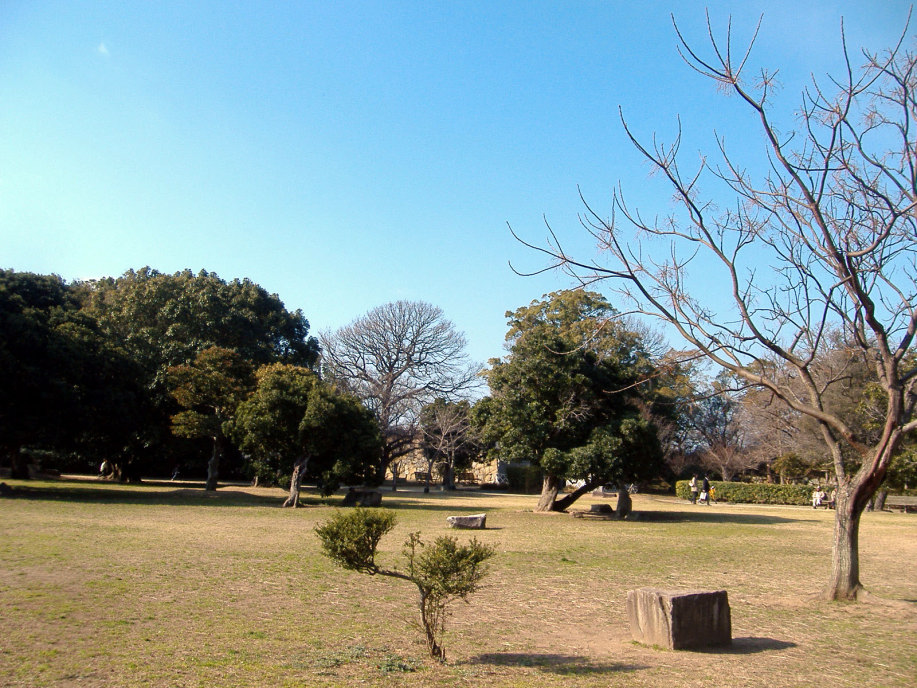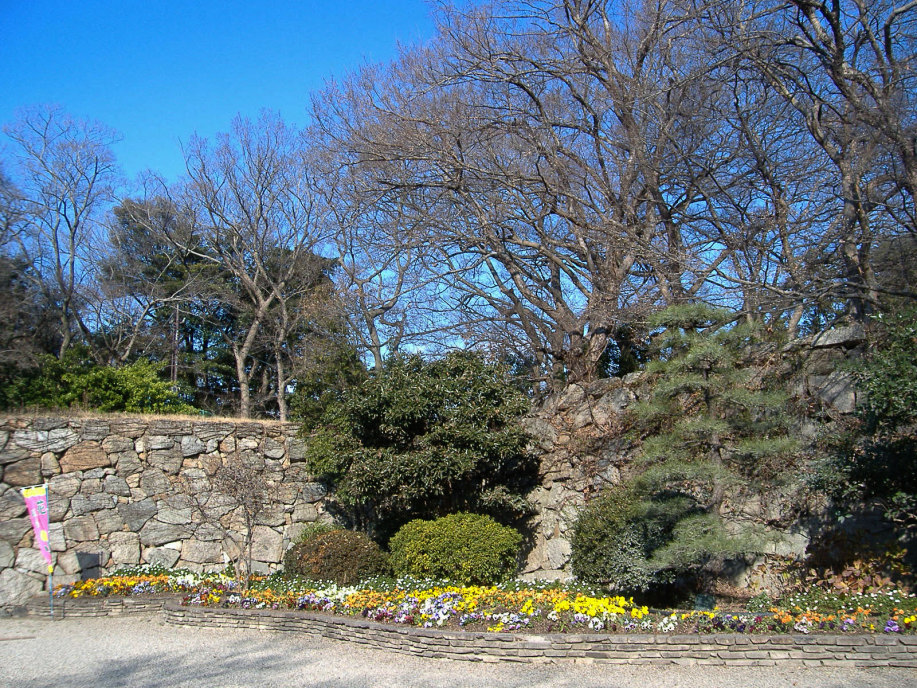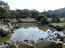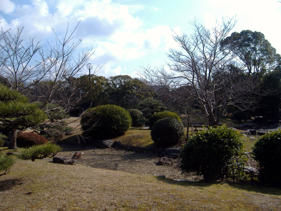 櫓の処で,ボランティアの方に聞いた話によりますと,明石が城下町として形成されていった頃,丁度,宮本武蔵が姫路城に居て,で,武蔵に城や町の普請を任せたとのこと・・・武術だけでなく兵法や,或いは,作庭にも優れいたようで,武蔵により庭をもたれているお寺もあるそうです。で,丁度,NHK大河ドラマで武蔵が取り上げられた年(岡山県でも,大盛り上がりでしたけど),所縁ということで,ここに武蔵の庭園を作られた(観光名所ということですよね)そうです。 |