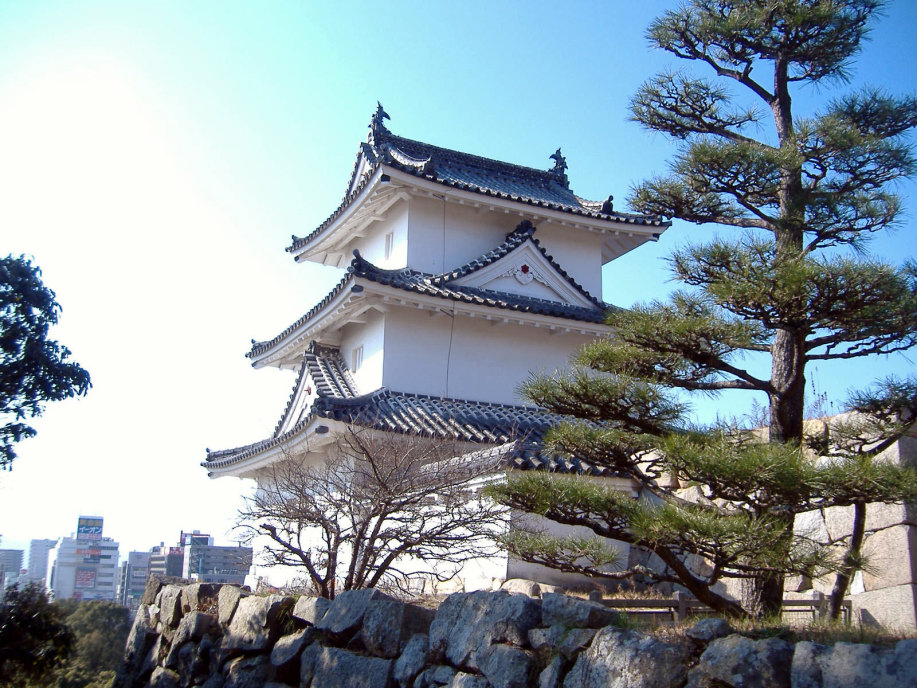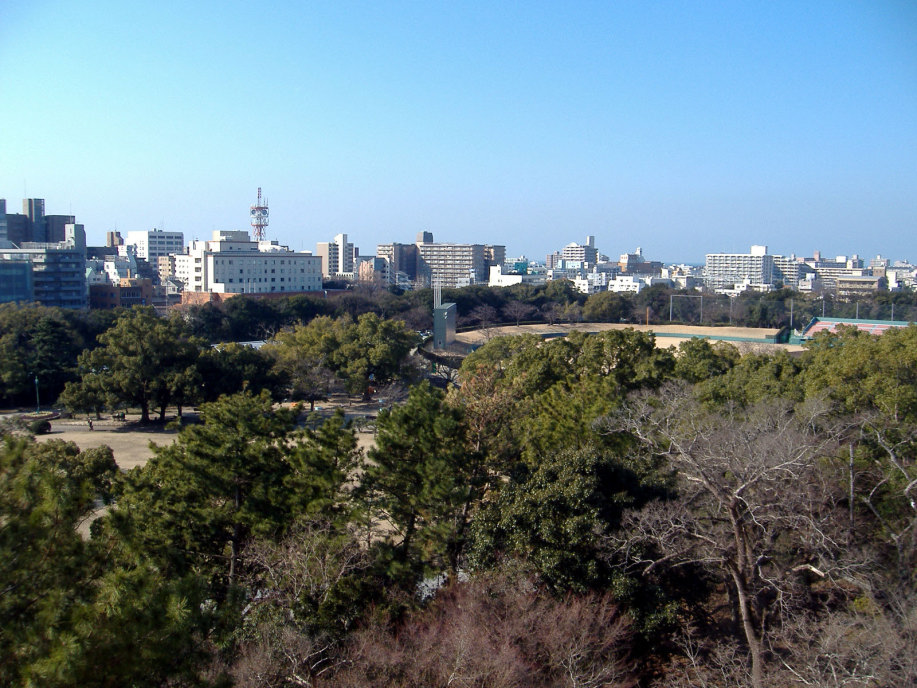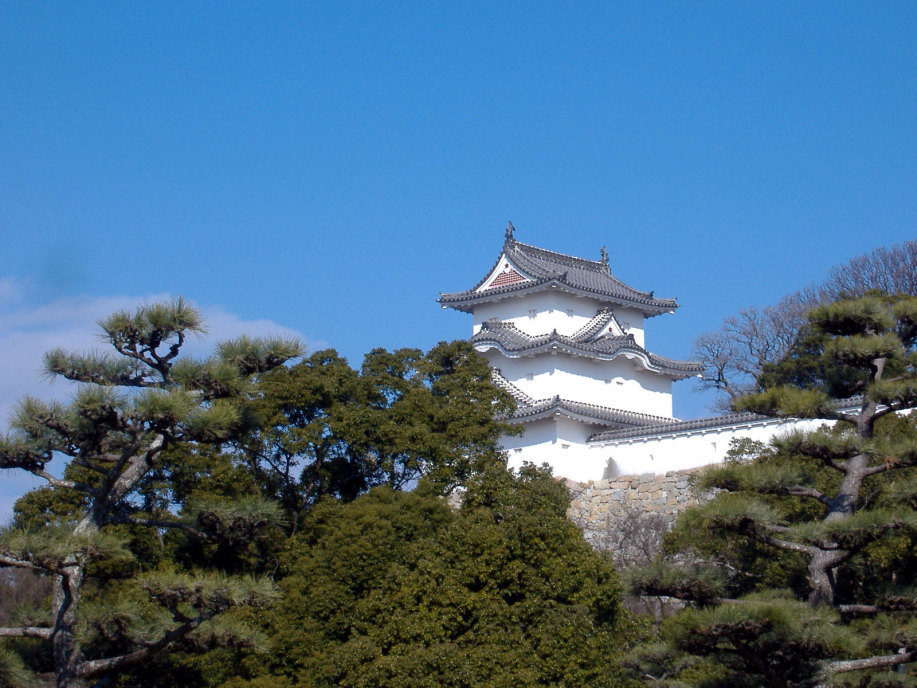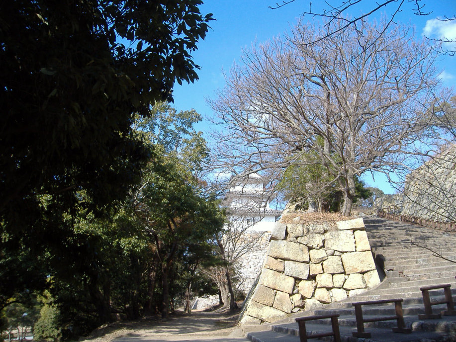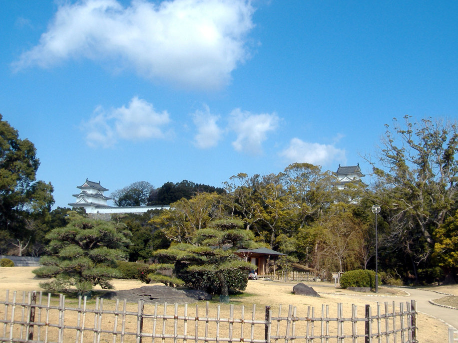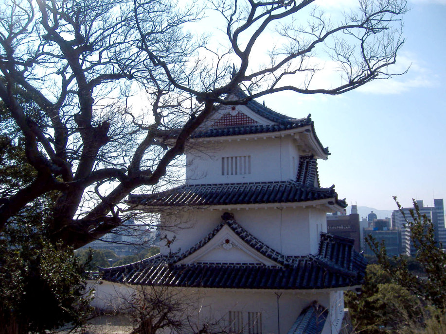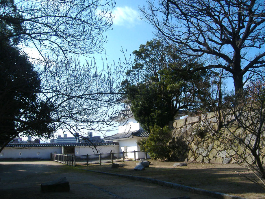 天守閣(石垣までは築かれたらしいですが,最終的には作られなかったとのこと)はなく,本丸に御殿を築いて,四隅に三重の櫓を配したものだったそうで,現在は,そのうちのニ櫓が残っているそうです。 |