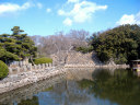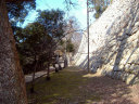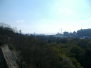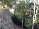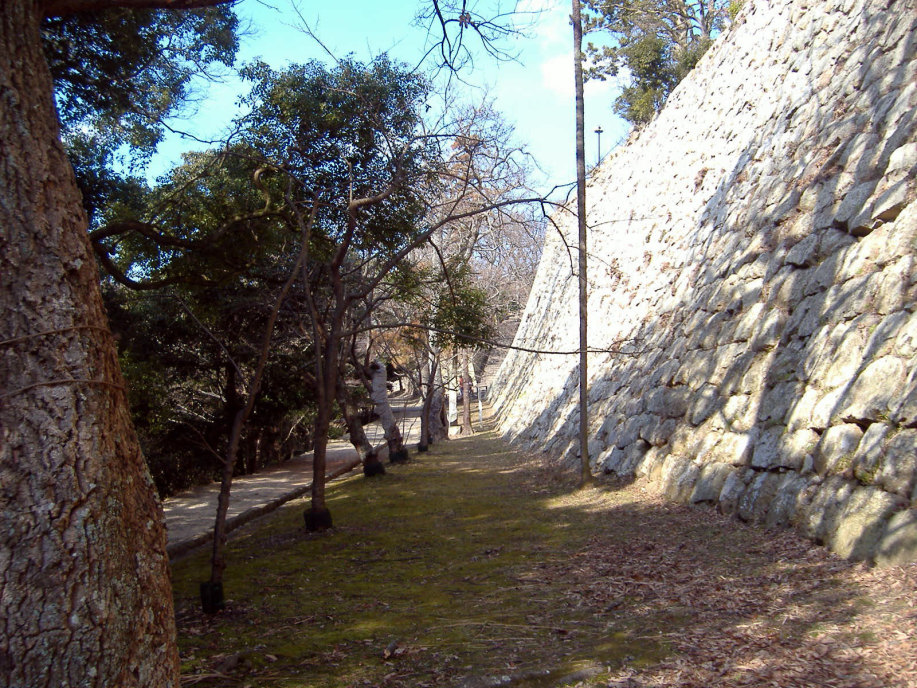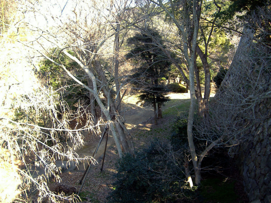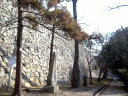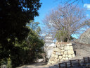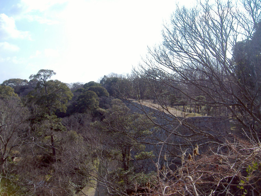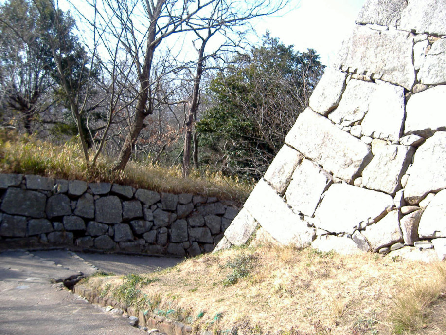 | 二の丸から東の丸の辺りです。石垣は算木作で,角の処は,順番に長い辺を交互に組み合わせているとのこと。 |
