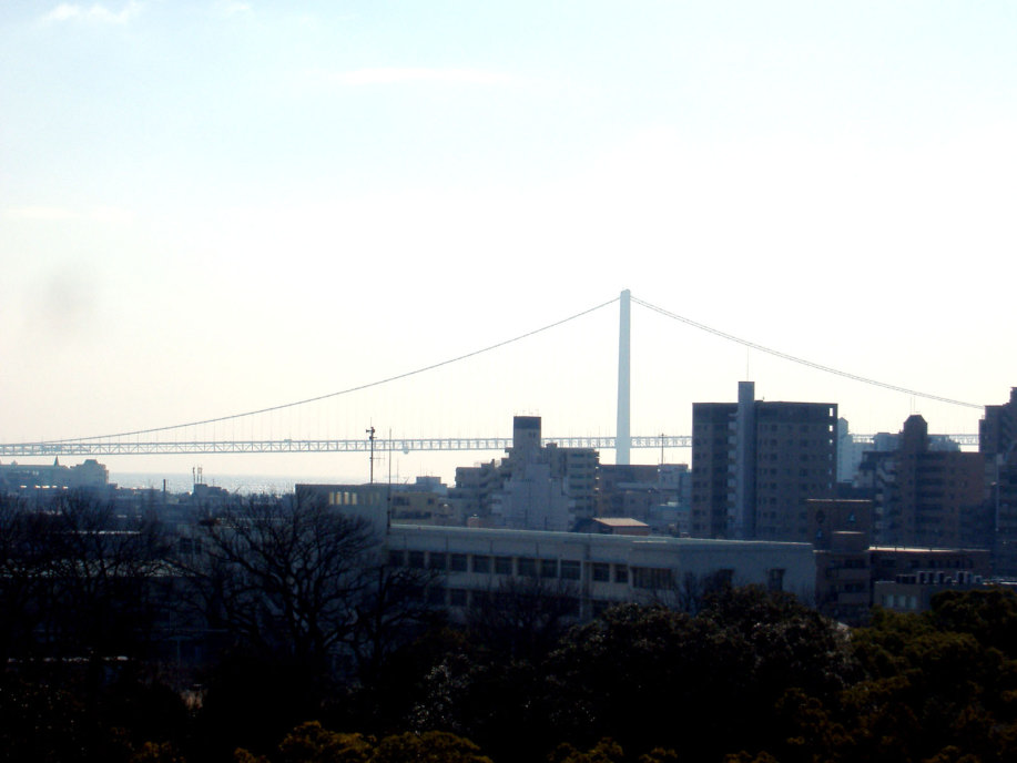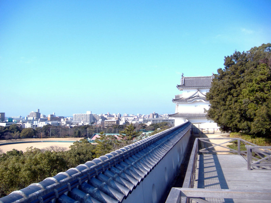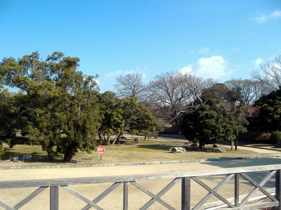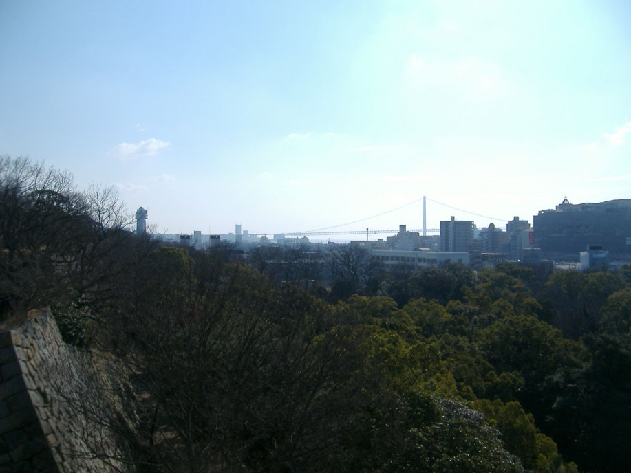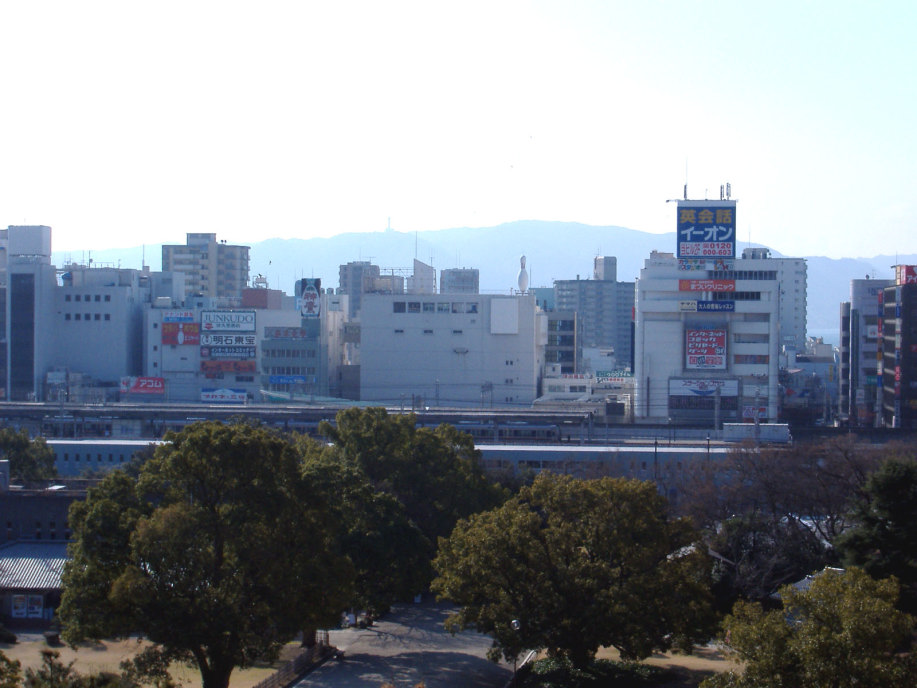 櫓の辺りから東には,天文台や明石大橋の鉄塔が見えています。 |
