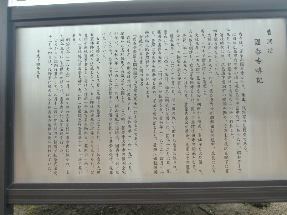 | 国泰寺さんからは,安芸の瀬戸内が遠望できました。彼の想いは,この広島の地で,根付いて,日本国中に染み渡って行くと信じます。 | ||||||