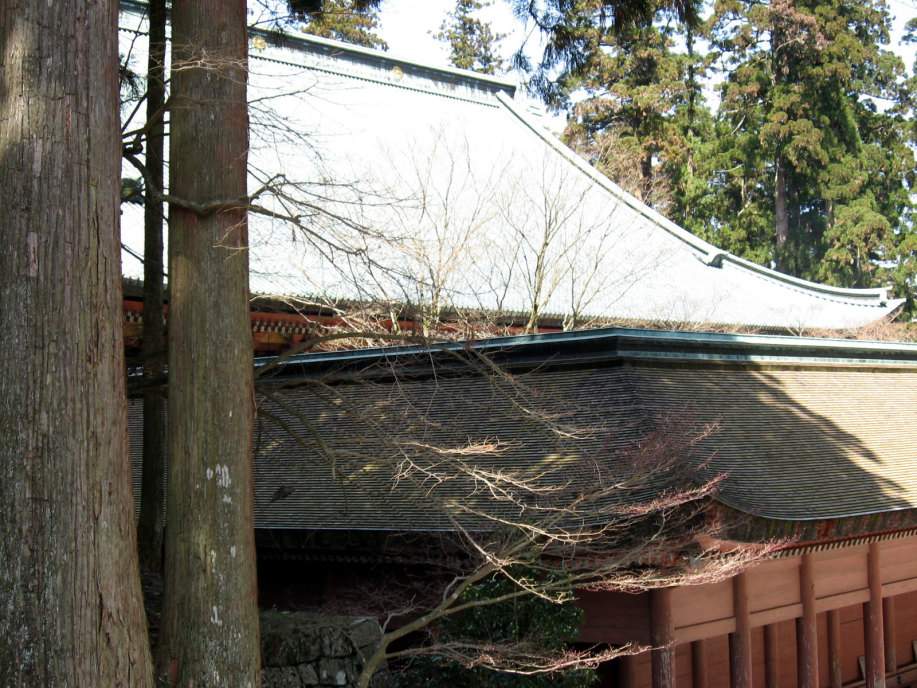 根本中堂です・・・が,堂内は,中庭も撮影禁止・・ということで,遠くから屋根を撮らせてもらっただけの写真です。