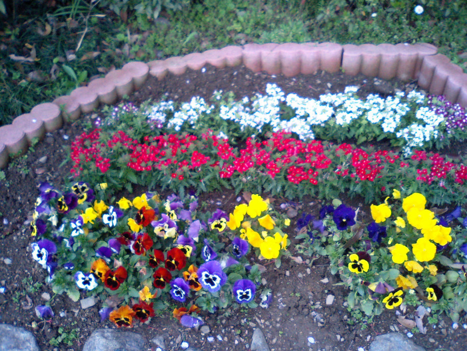 また,南側のお寺の山裾には神社もあって,そこの花壇も丹精にされてました。