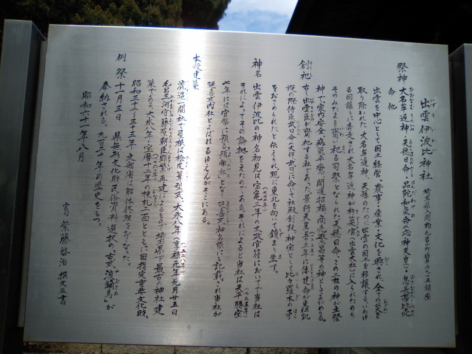| 社名の通り,元々は出雲を中心に恩恵を広められた神様が祀られているとのことです。 |