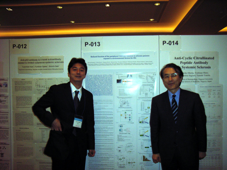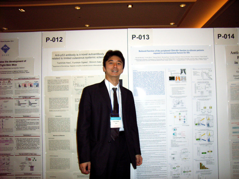 さて,林先生が今主に珪酸による自己寛容の異常のところをしてくれてますが,強皮症の環境要因っていう視点で演題を出してくれました。そして,彼は3日間,よく勉強してくれました。 |
