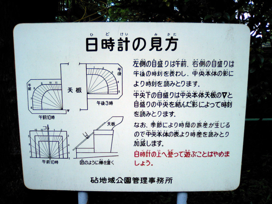 日時計もありました。これは,ちょっと複雑な日時計で・・少し説明版を読まないと・・分かりません。 |