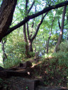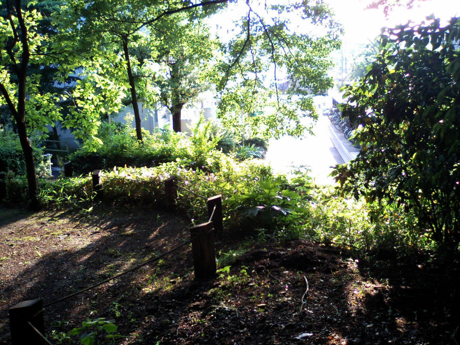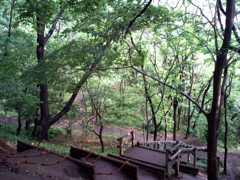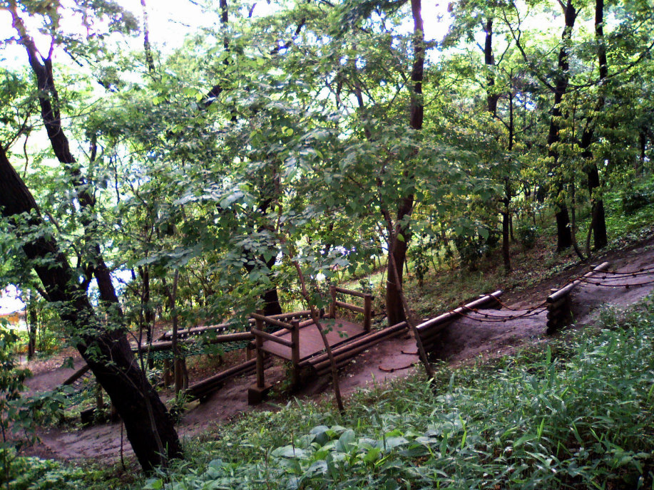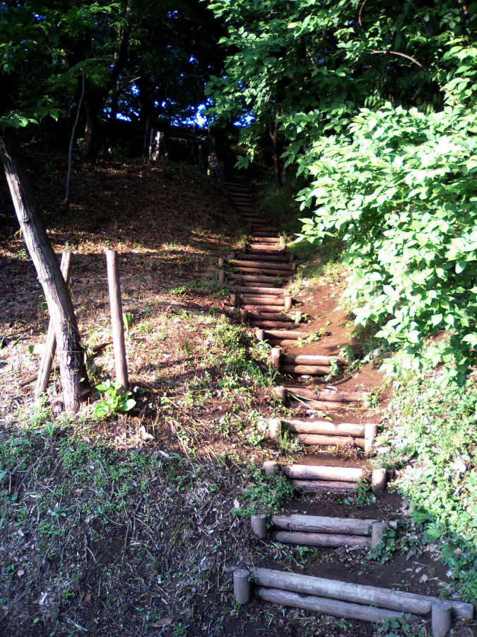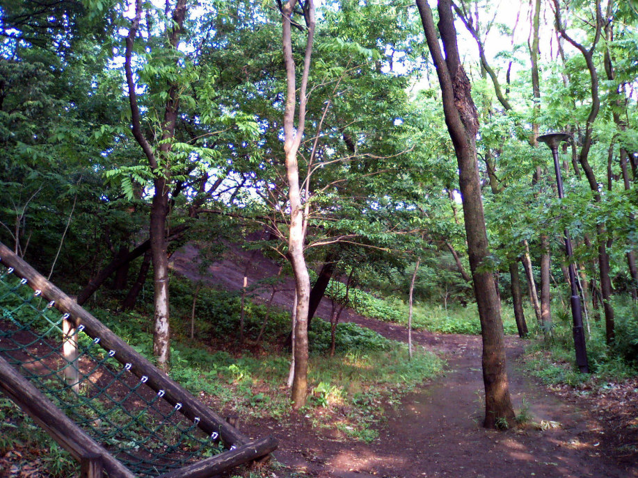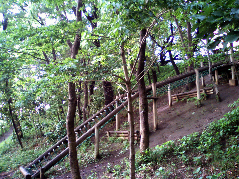 アスレチックの遊具からそのまま林の中の小径へ出ます。少し崖になっているのですよね・・
