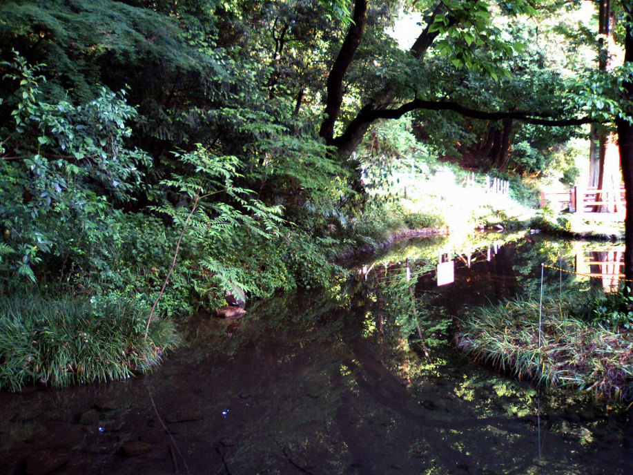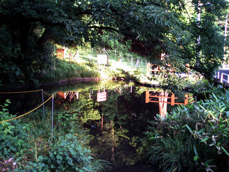 湧き水が溜まった池のようなところも,汚れないようにきれいにしてありました。穏やかな水面でした。 |