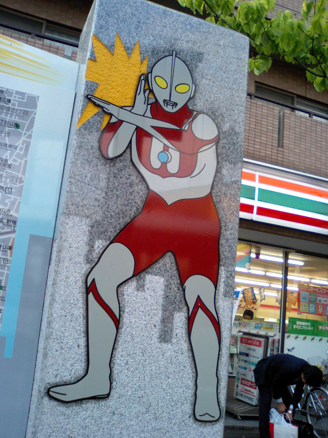 そしって祖師谷はウルトラマンの里なのですね・・・商店街もウルトラマン商店街で・・・駅の両方に像や看板が・・・。