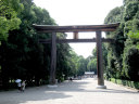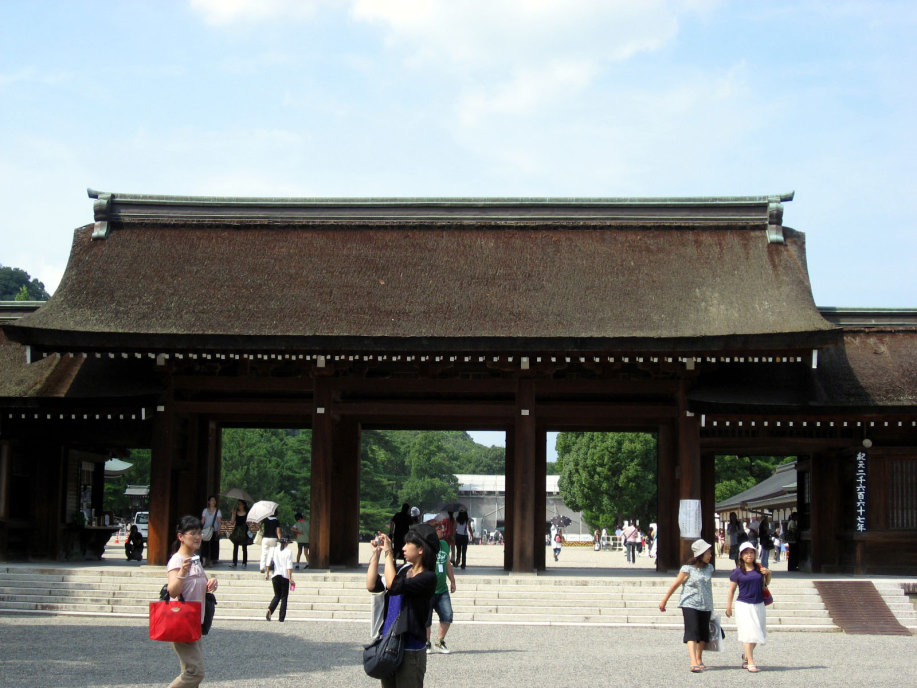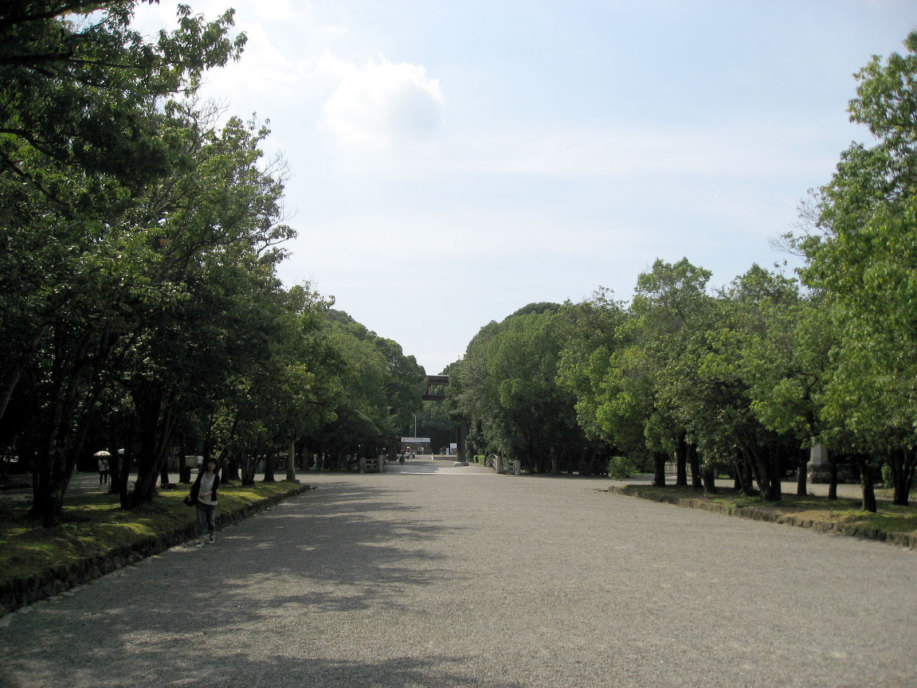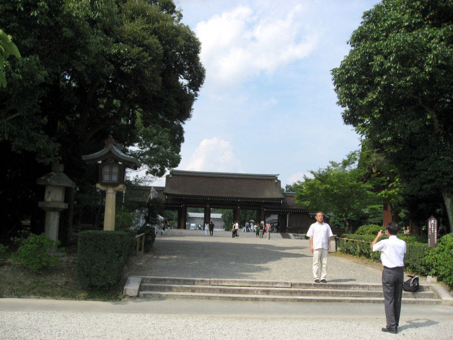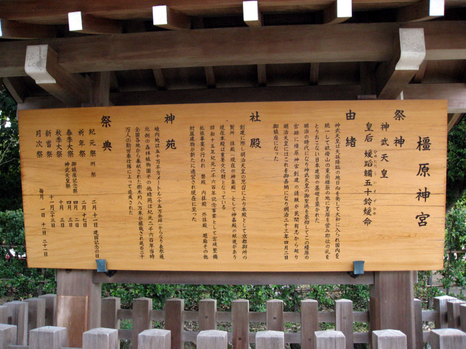 「橿原神宮は、御祭神・神武天皇が畝傍山の東南・橿原の地に宮を建てられ即位の礼を行われた宮址に、明治23年に創建された。