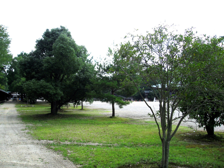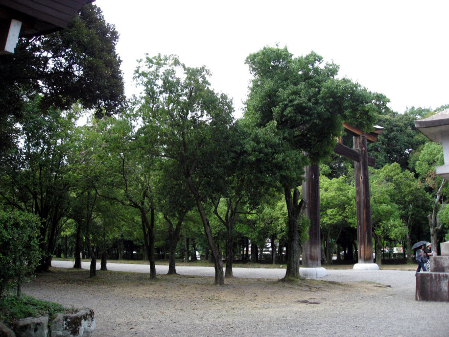 木製の大鳥居を目指して進んで行きました。畝傍山の梺にあるお社ですが・・・。広大です。 |