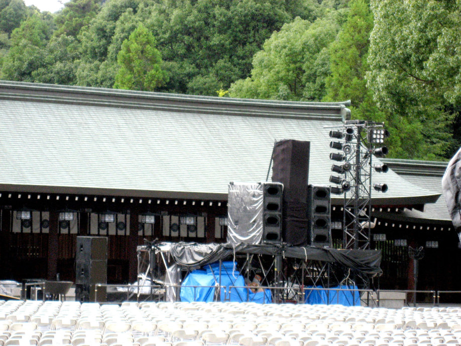 そして,中では,コンサートの準備が着々と進められていて,リハーサルのドラムの音なども,響いていました。 |