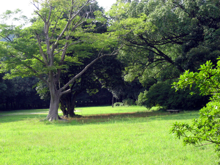 森林遊苑は,下のごとく,晩夏のそれでも強い陽射しを受けていました。 |